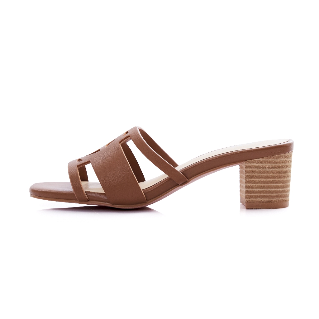 O&B รองเท้าส้นสูงหนังแพะ รุ่น O&B SANDALS HEELS IN SEPIA BROWN-11268SG00592F_F5BRXX