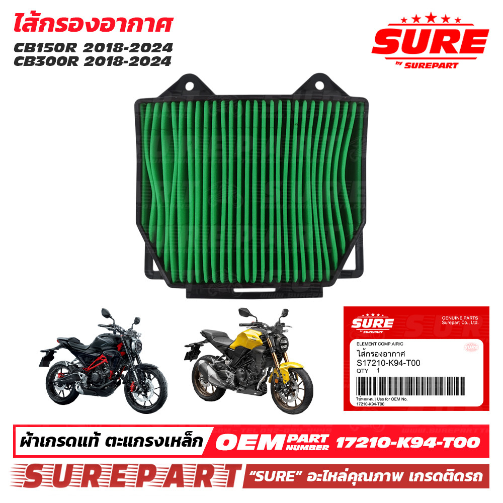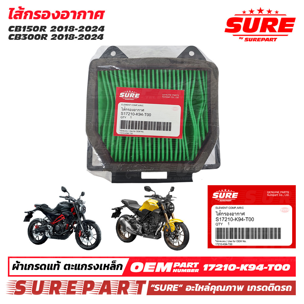 ไส้กรองอากาศ CB150R , CB300R ปี 18-24 คุณภาพ เกรด OEM ใช้ทดแทน รหัสแท้ เบอร์ 17210-K94-T00 ใช้นาน 12,000 โล