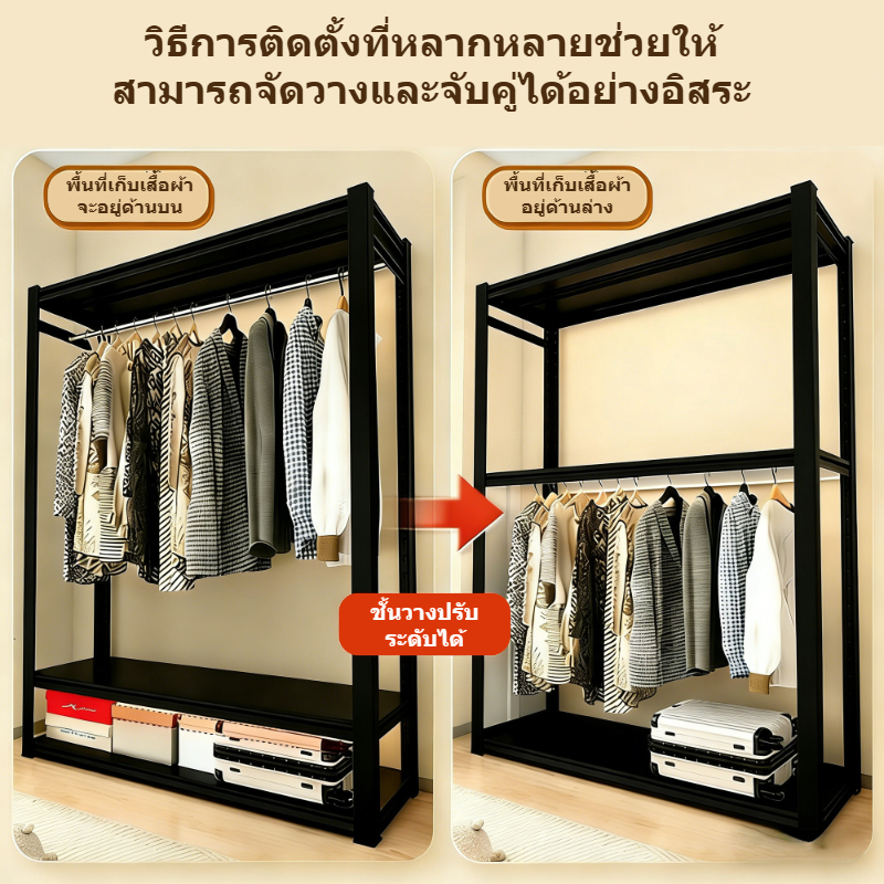 SEVENWOOD ราวตากผ้า ราวผ้า ลาวตากผ้า ตู้เสื้อผ้าอเนกประสงค์ ราวแขวนเสื้อ ชั้นวางของ แข็งแรงทนทาน สามารถประกอบเองได้ง่าย