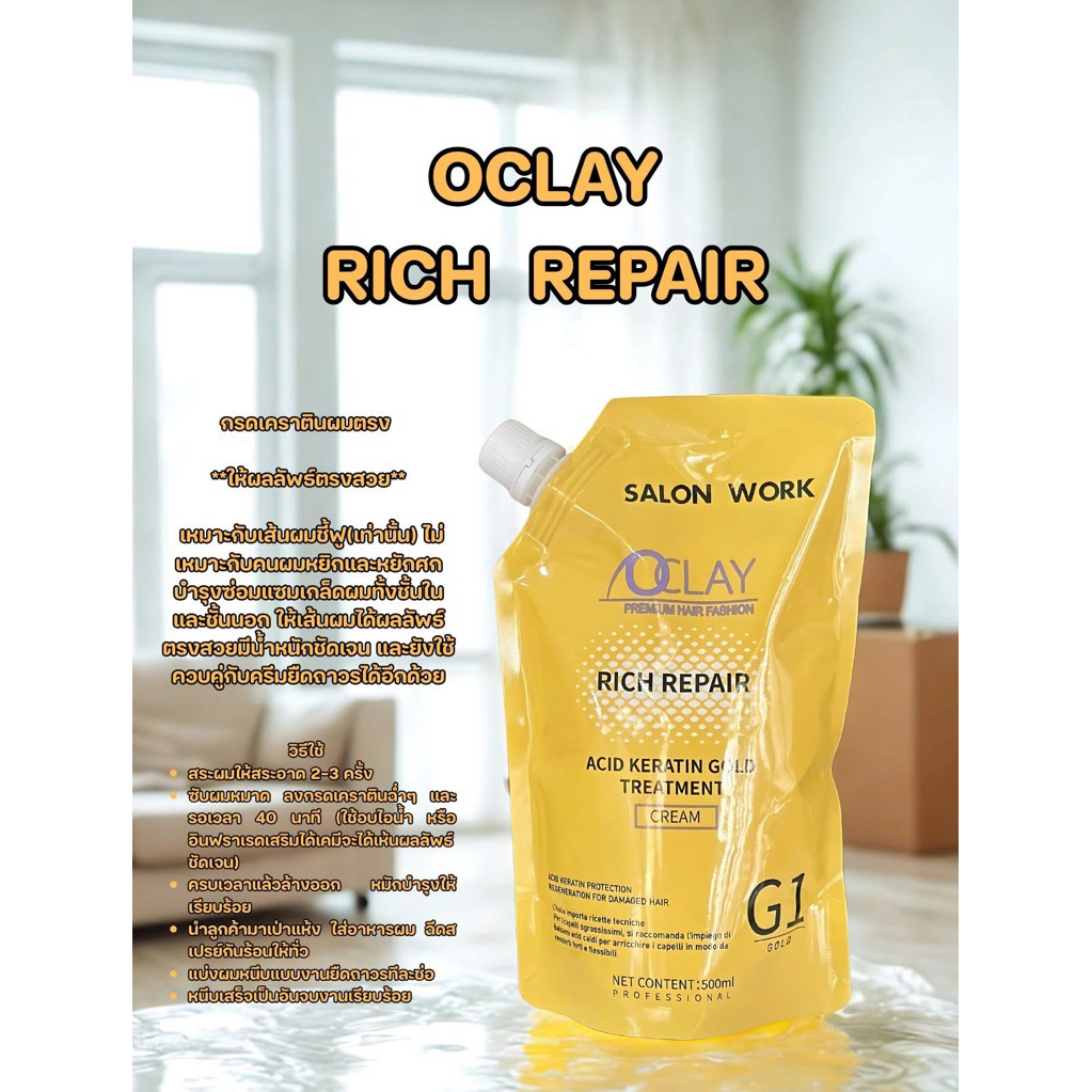 OCLAY เคราตินไม่แสบตาถุงเหลือง(สำหรับช่างทำผมได้รับ1ถุง)