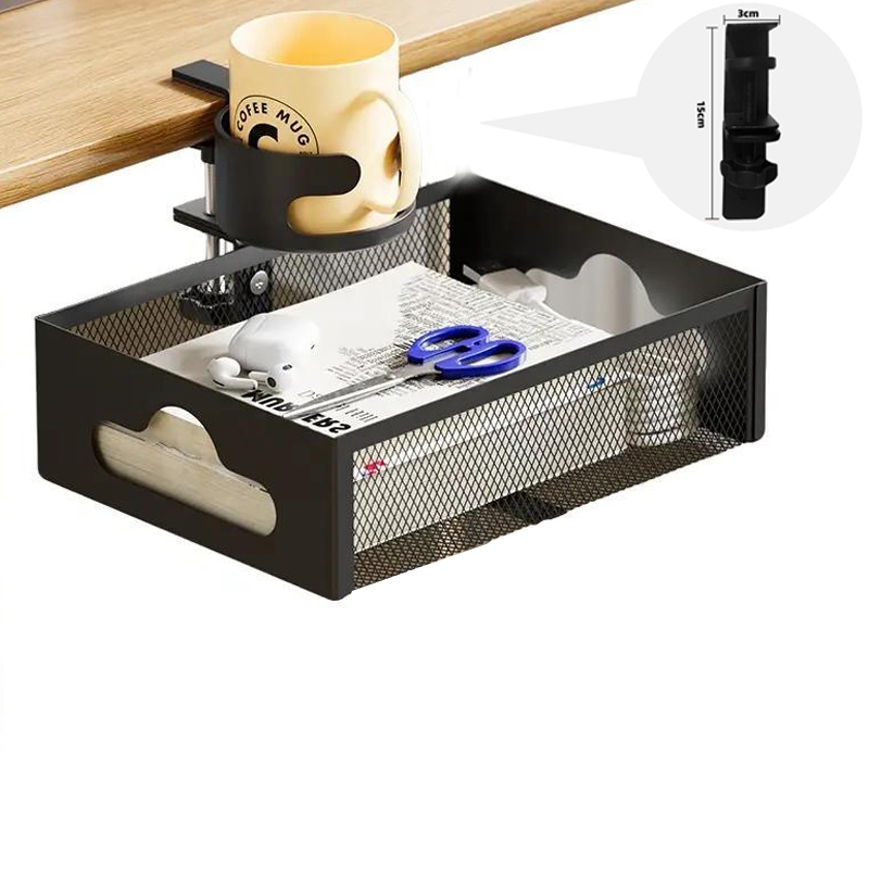 ที่วางแก้วออฟฟิศ ช่องเก็บของ 2in1 ตะกร้าเก็บของโลหะสามารถหมุนได้ 360 องศา