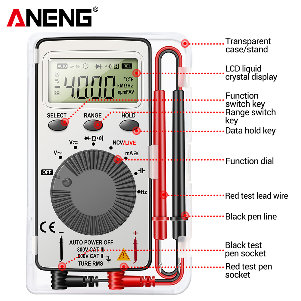 ANENG AN101 Mini Digital Multimeter - 1999 T-RMS AC/DC Tester พร้อม NCV, Capacitance, และฟังก์ชั่นโวลต์มิเตอร์