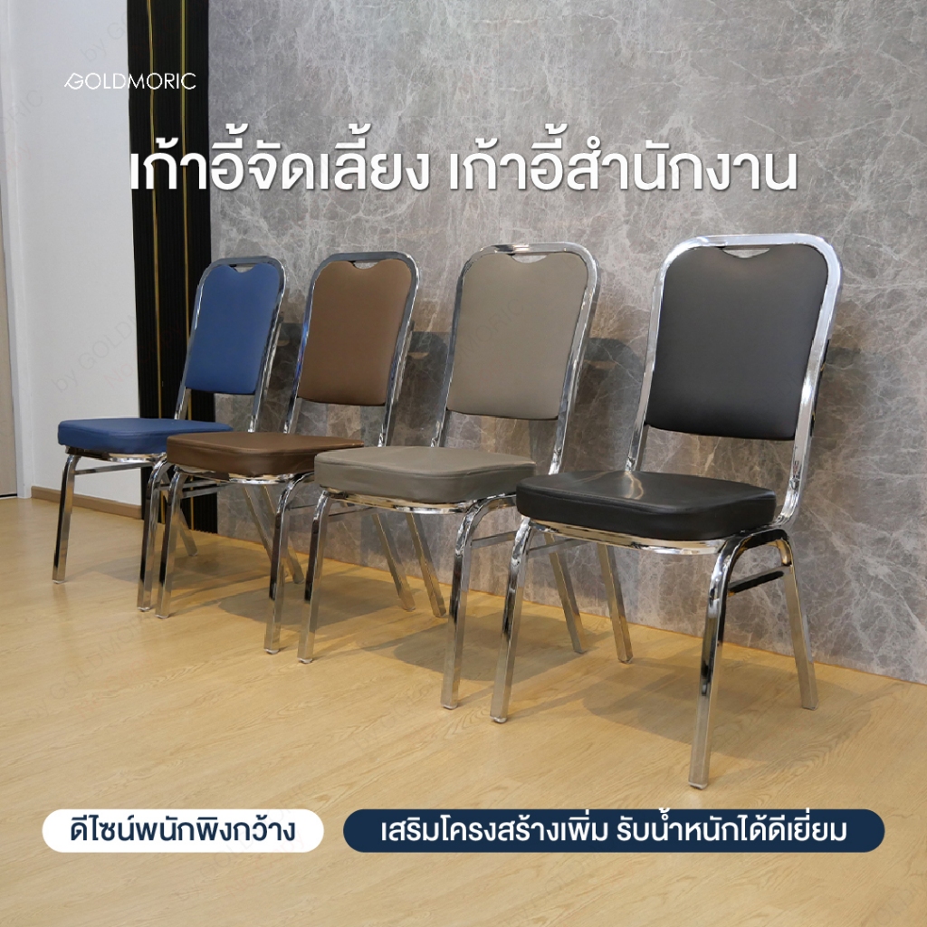 Goldmoric (พร้อมจัดส่ง) เก้าอี้จัดเลี้ยงเบาะหนัง โครงเหล็กชุบโครเมี่ยม พนักพิงใหญ่ เก้าอี้สัมนาเกรดพรีเมี่ยม