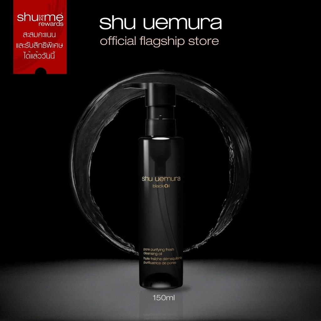 shu uemura ชู อูเอมูระ black oil pore purifying fresh cleansing oil 150ml คลีนซิ่งออยล์สูตรชาร์โคลและข้าวสีนิลพรีเมียม