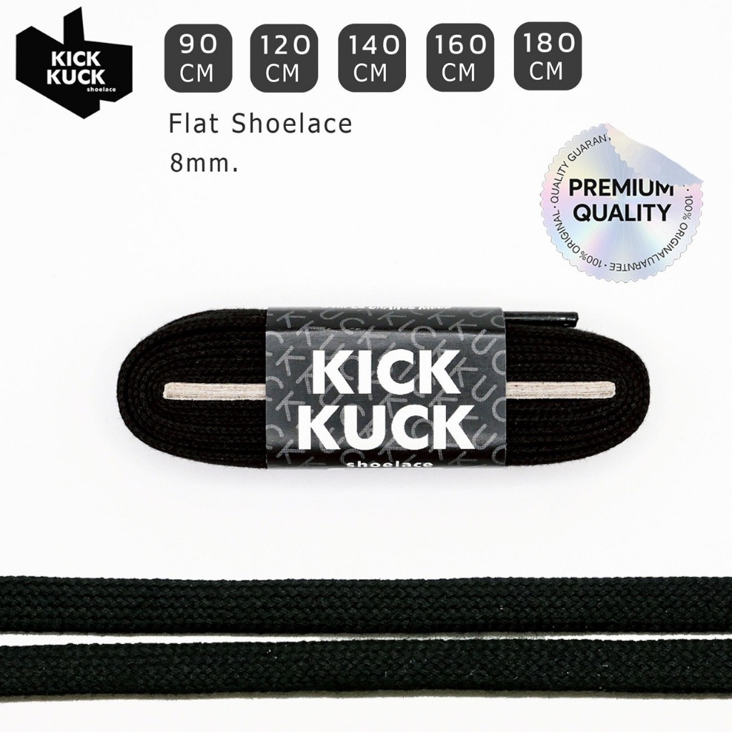 ( หนา2ชั้น พรีเมี่ยม 160cm.(ใหม่9เฉดสี) ) KICKKUCK(คิกคัก) เชือกรองเท้า (ทรงแบน) 160ซม กว้าง 8มิล กีฬาและลำลอง