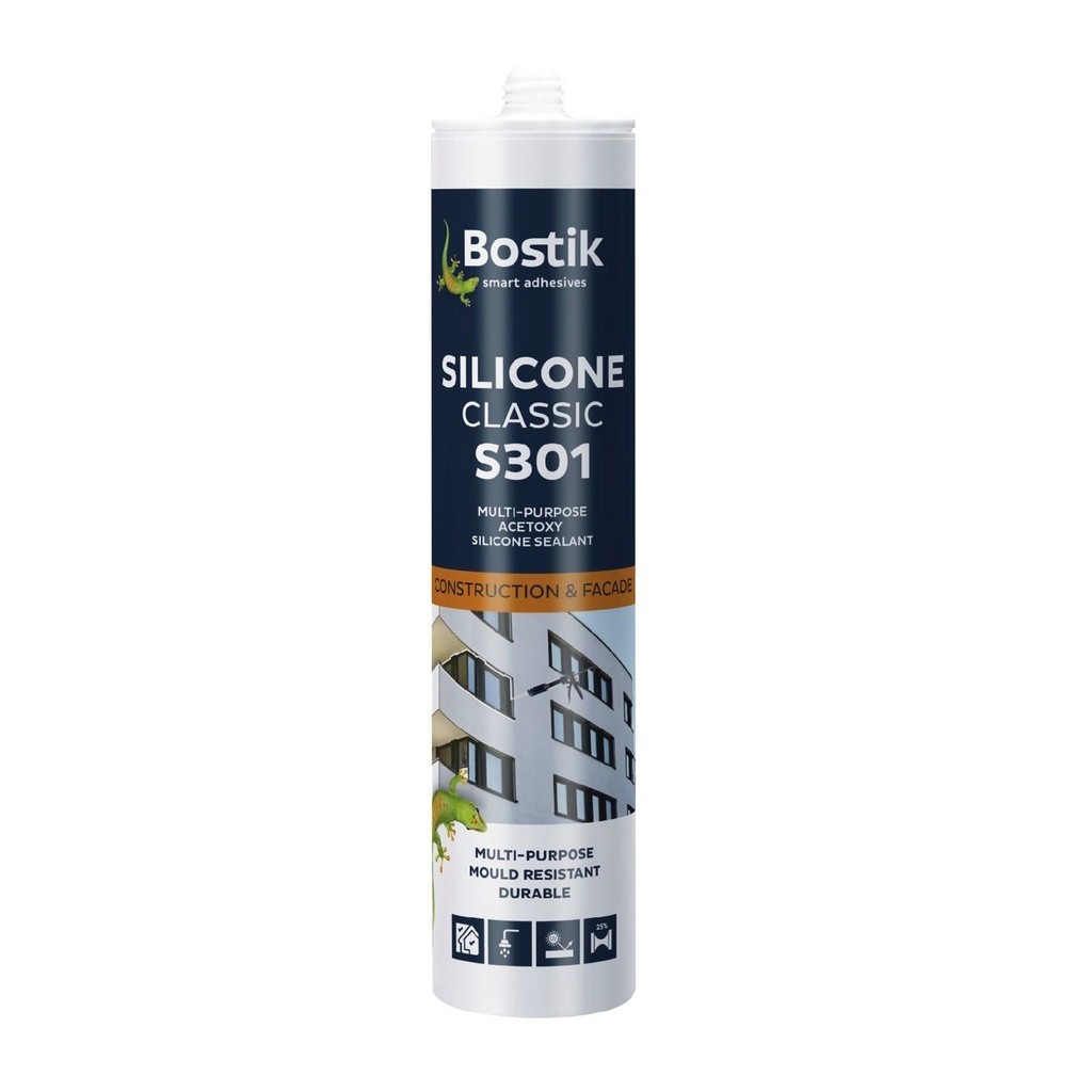 BOSTIK ซิลิโคนชนิดมีกรด สีขาว/เทา/ดำ/ใส 280ml S301 SILICONE CLASSIC