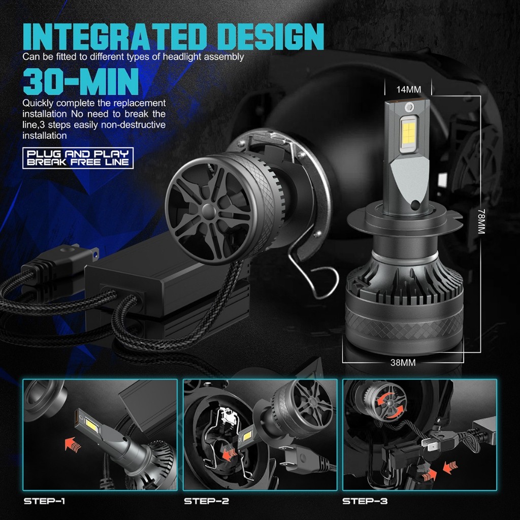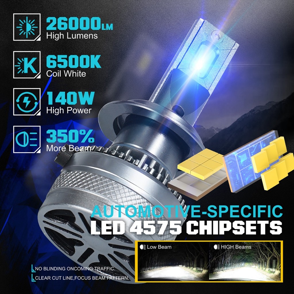 หลอดไฟหน้า LED ขั้วตรงรุ่น MAZDA Mazda-2 2015-2021 แสงขาว มีพัดลมในตัว ราคาต่อ 1 คู่ ซุปเปอร์สว่าง 140W 26,000LM