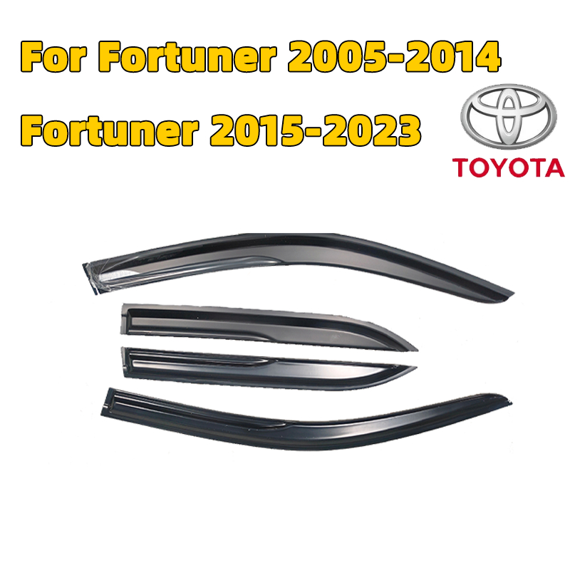 กันสาด Fortuner 2005-2014 Fortuner 2015-2023 4 ประตู (4ชิ้น) แผ่นกันฝนกันแดดกันฝนอะคริลิคสีดำ ป้องกันแสงใส่ร่วมกันได้ABS