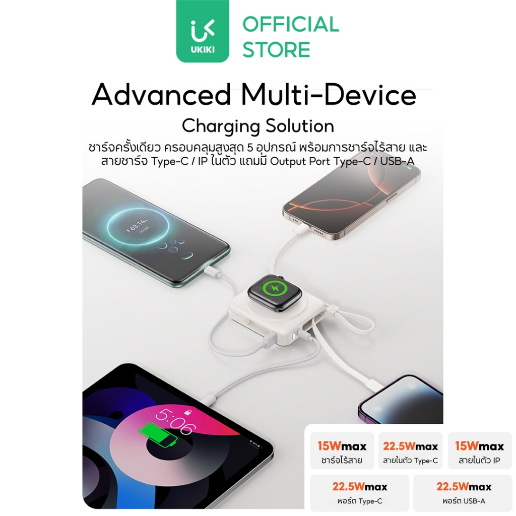 [CCC] UKIKI Powerbank 3in1 10000mAh ชาร์จเร็ว PD22.5W Wireless Charge พาวเวอร์แบงค์ แบตสำรอง K06