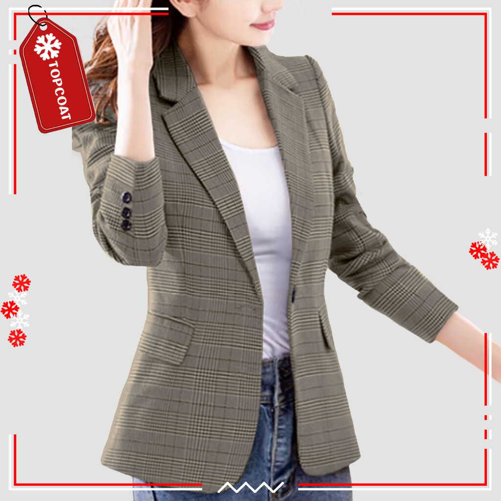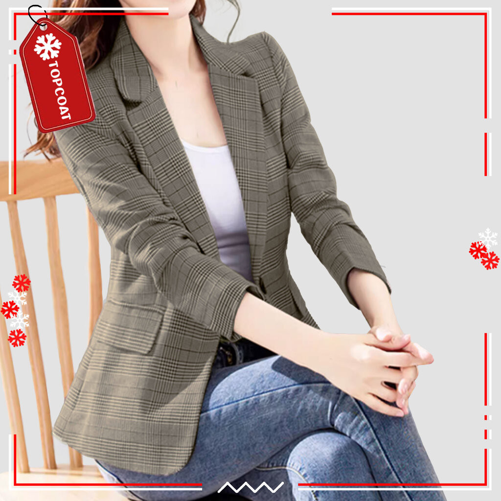 TOPCOAT เสื้อสูทเบลเซอร์หญิง ลายสก็อต ผ้าไม่หนา ซํบในทั้งตัว ใส่สบาย (1 ตัว) Size : S-3XL