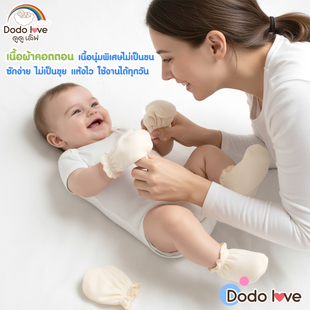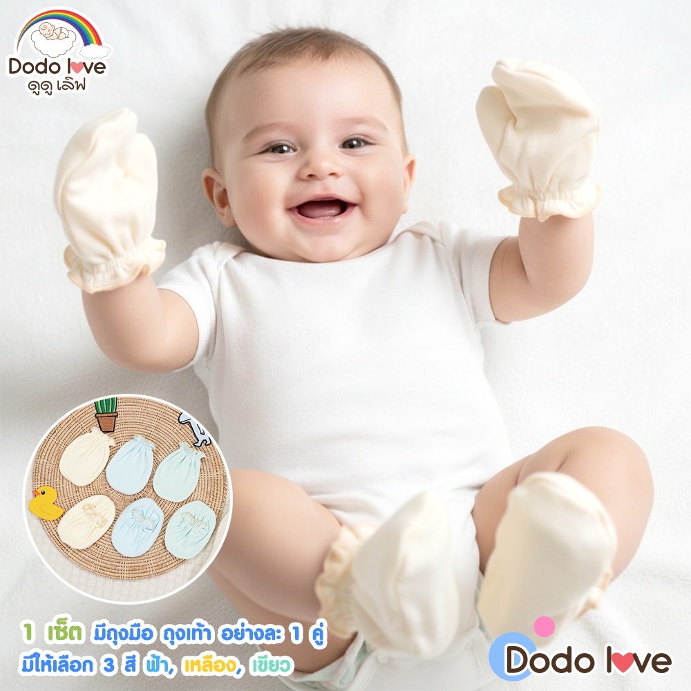 Dodolove ถุงมือ ถุงเท้า เด็กอ่อน เนื้อผ้าคอตตอน เซ็ทถุงมือ ถุงเท้า สำหรับเด็ก