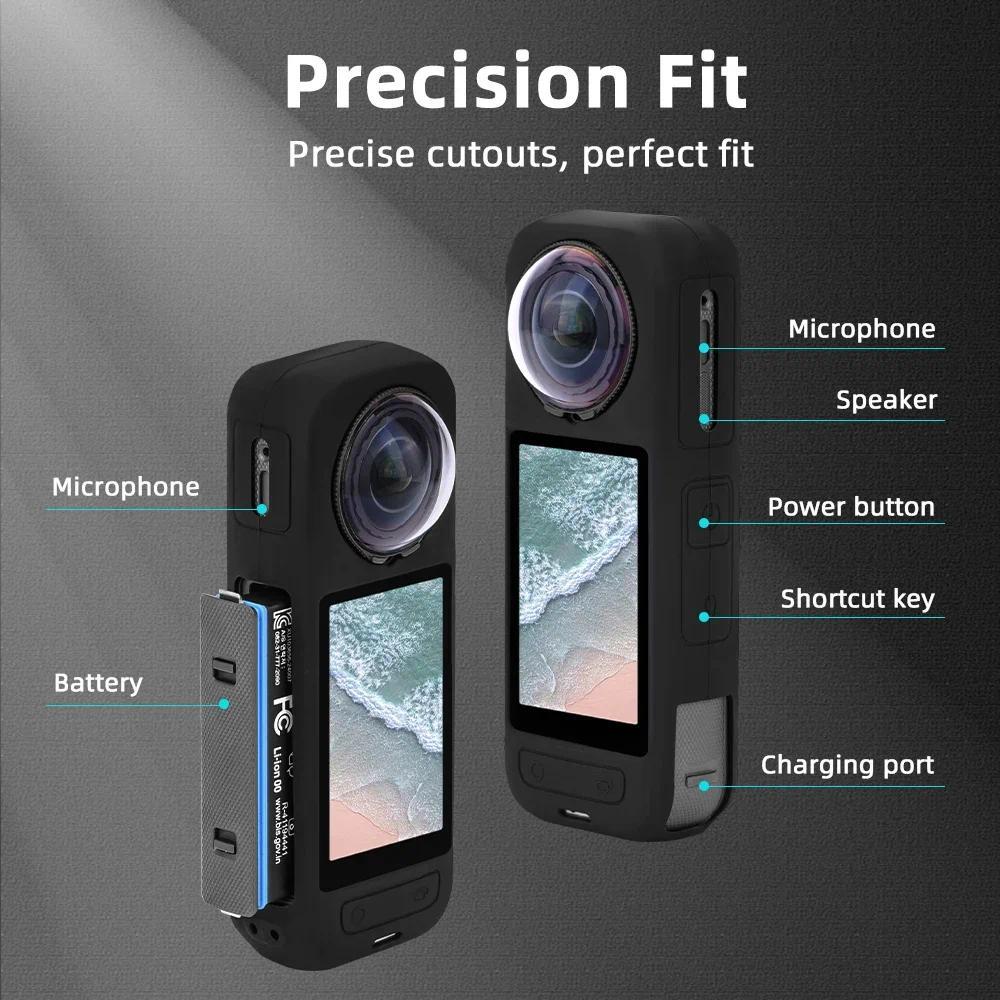 ฝาครอบเคสซิลิโคน Flymile สําหรับอุปกรณ์เสริม Insta360 X5,ตัวป้องกันรอยขีดข่วน/ยางนุ่มที่อยู่อาศัย