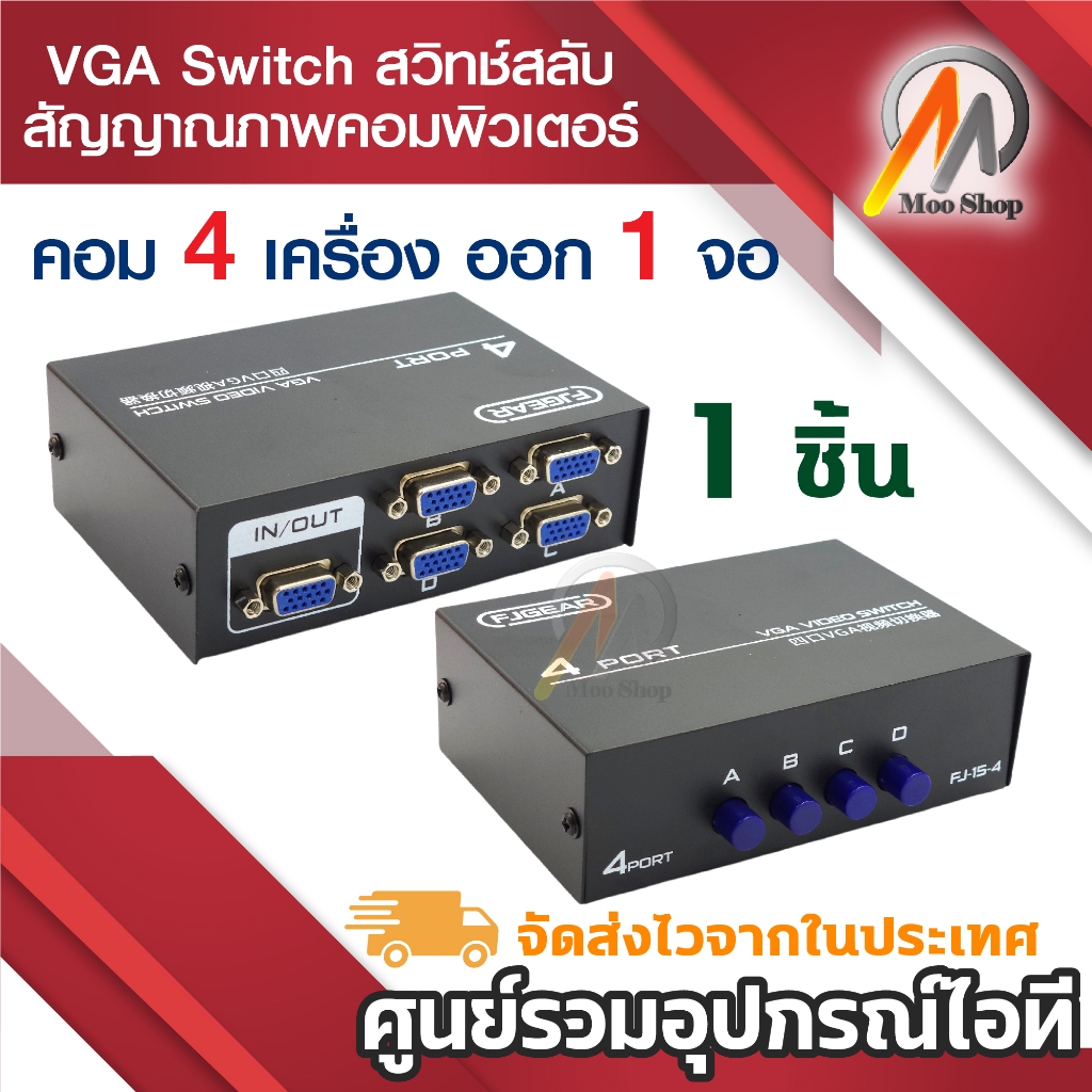 2 Port VGA Switch สวิทช์ สลับสัญญาณภาพ คอมพิวเตอร์ 2 เครื่อง ออก 1 จอ วัสดุโลหะแข็งแรง ใช้งานง่าย กดปุ่มสลับได้เล