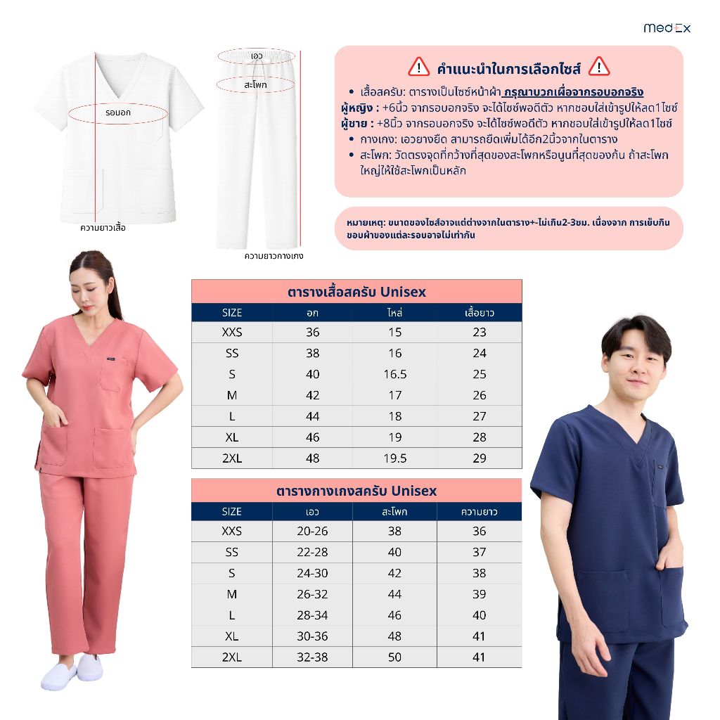 ชุดสครับ สีRose อก36-48นิ้ว MedEx Scrubs รุ่นCloud Wear
