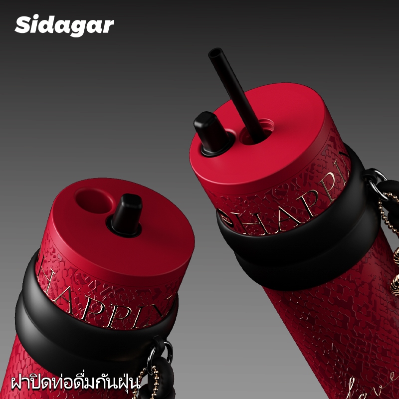 Sidagar แก้วเก็บความเย็น 316 สเตนเลส เคลือบเซรามิก แก้วน้ํา ขนาด710 มล พร้อมหลอดดูด แก้วน้ำเก็บอุณหภูมิ มีถุงของขวัญ,ของขวัญปีใหม่