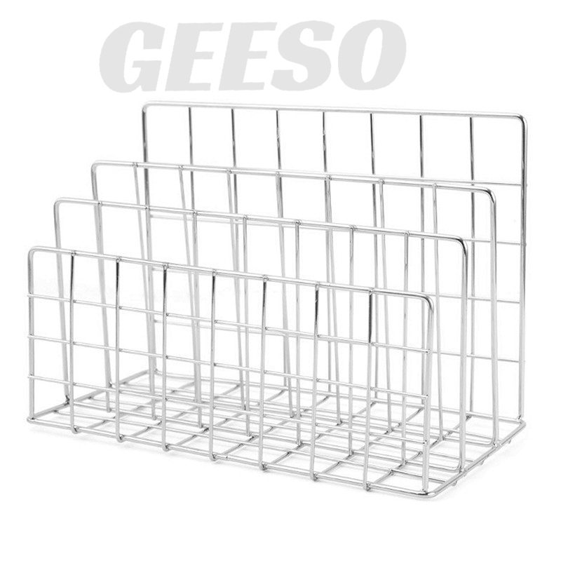 GEESO Minimalist Iron Desktop Storage Rack Organizer ตารางจัดระเบียบชั้นวางหนังสือเอกสารโต๊ะ Multi-functional 金属三格书架