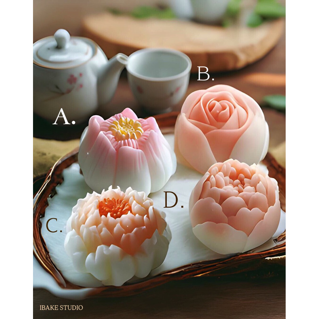 พิมพ์ดอกไม้ซิลิโคน สำหรับทำพุ้ดดิ้ง วุ้น มูส อาลัว 4 ลาย ขนาด (67ml.-88ml.)