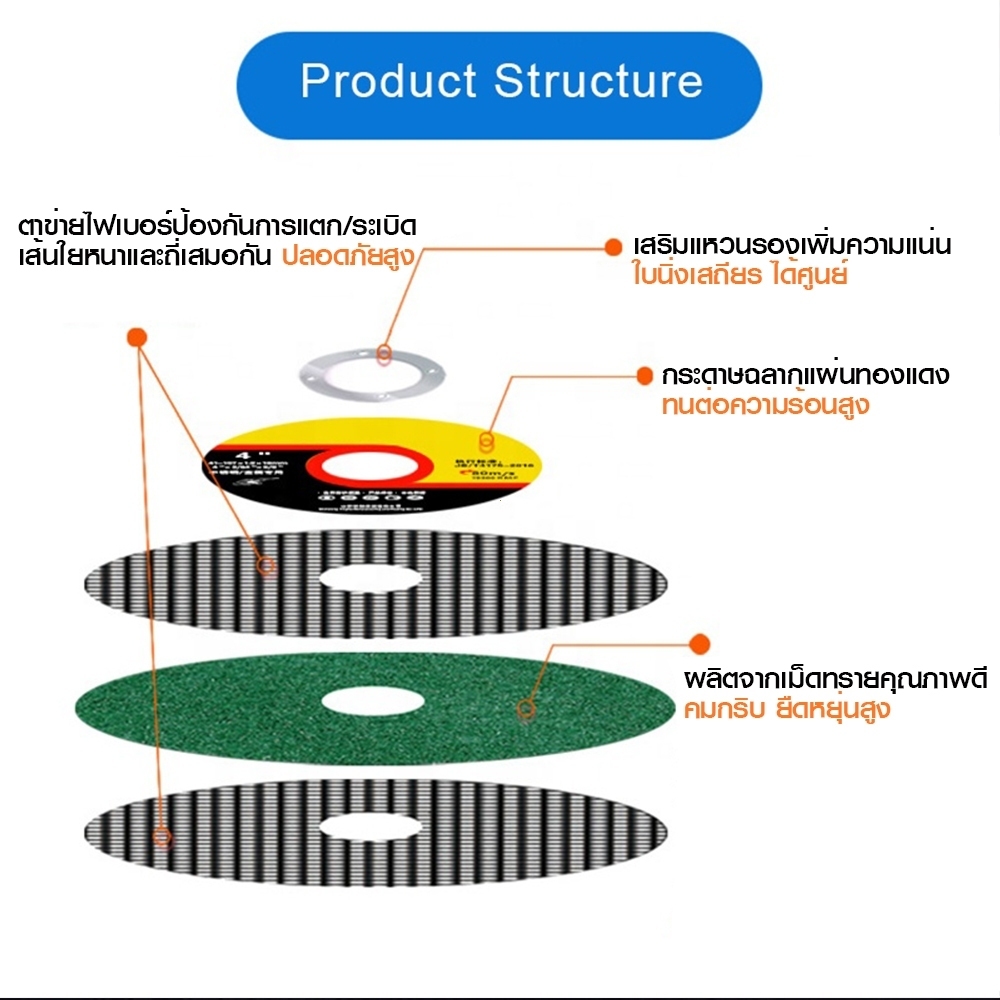 TH Tools 100pcs ใบตัดเหล็ก ตัดสเตนเลส 4นิ้ว 1กล่องมี 100แผ่น