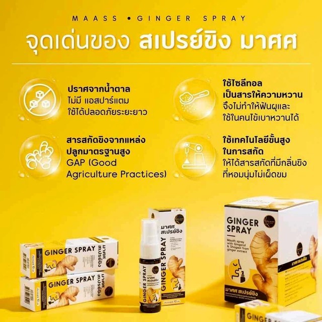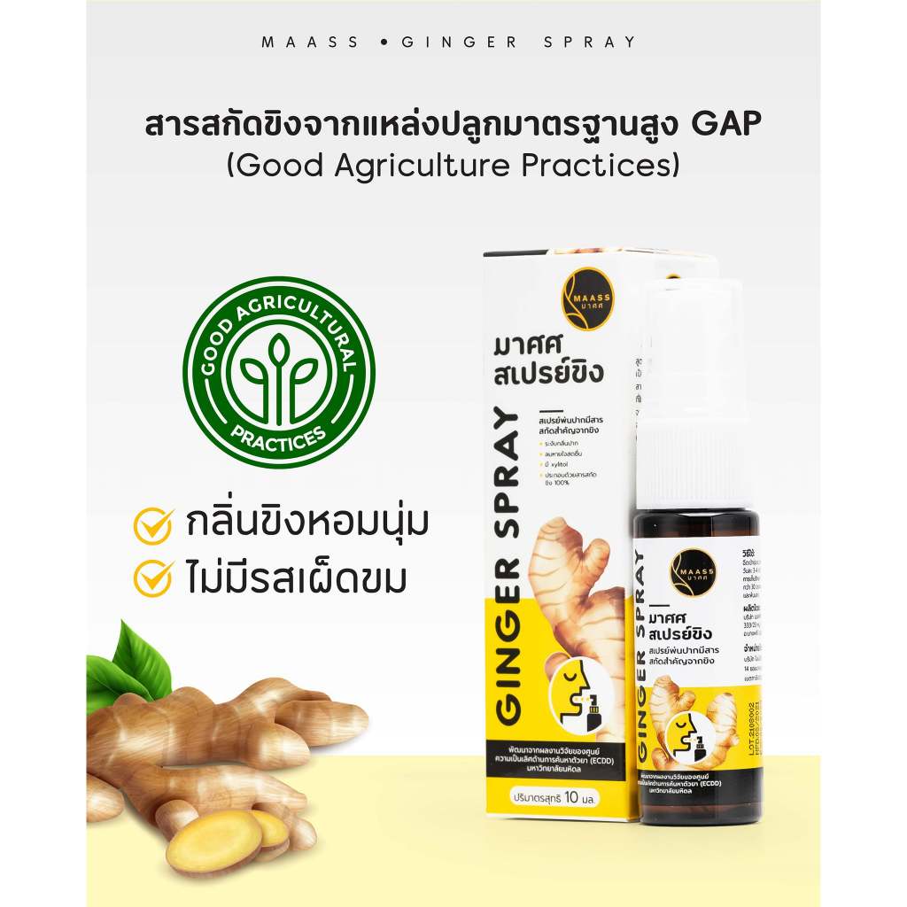 มาศศ สเปรย์ขิง 15 ml MAASS Ginger Spray สำหรับช่องปากและลำคอ
