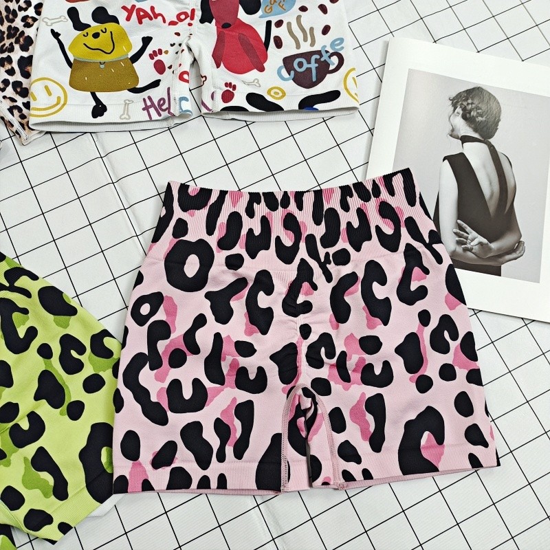 ขาสั้นโยคะลายเสือดาวสำหรับผู้หญิง ฤดูร้อน เอวสูง กางเกงสามส่วน/กางเกงยกสะโพกสีพีช/กางเกงฟิตเนสวิ่งแน่น/ระบายอากาศแห้งเร็ว