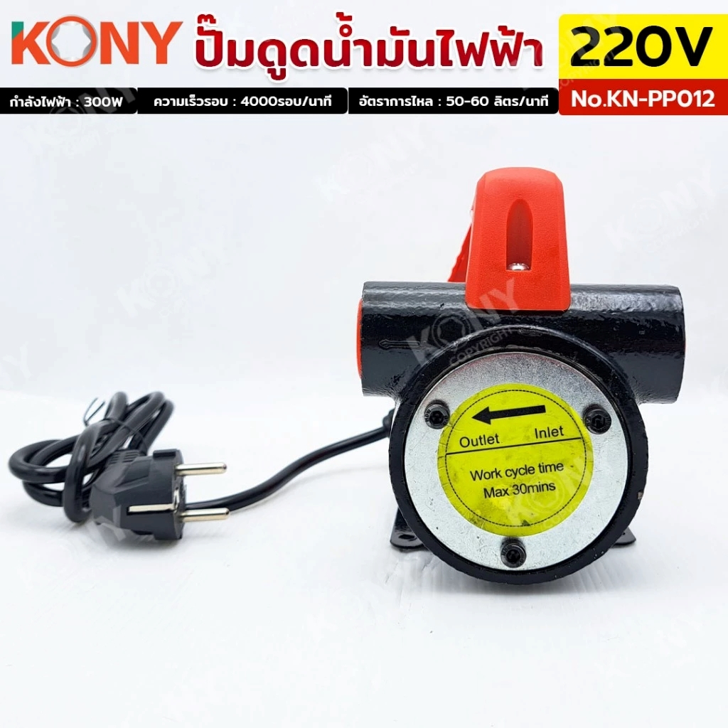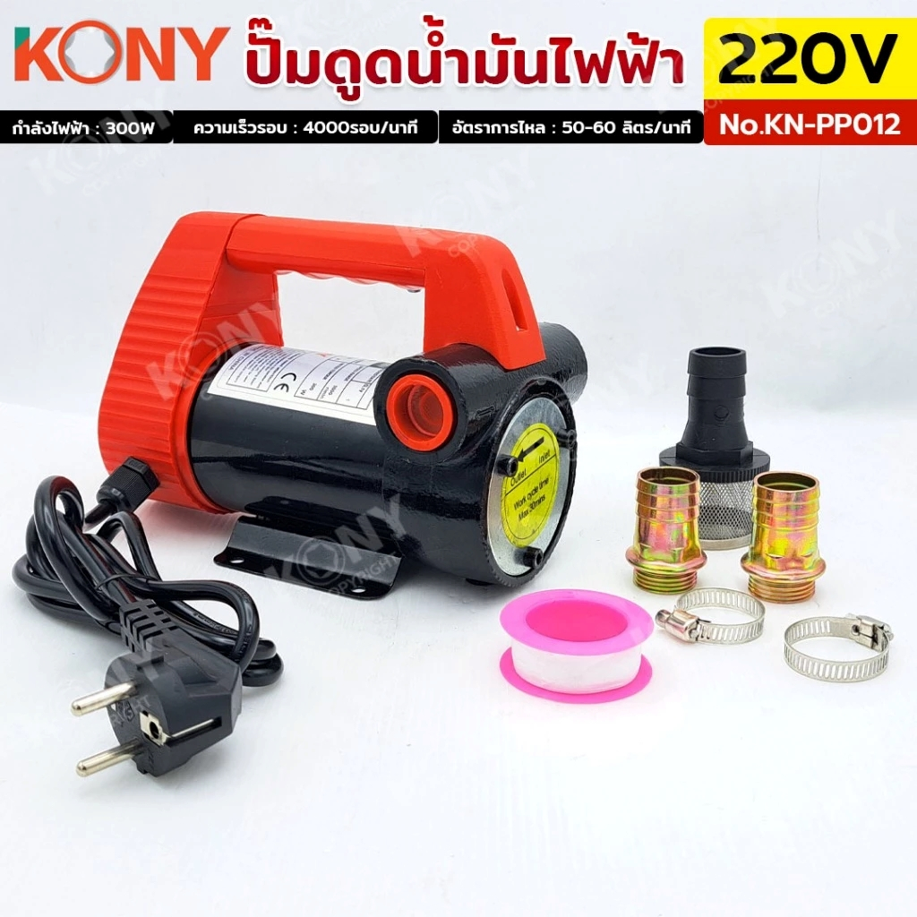 KONY ปั๊มดูดน้ำมันไฟฟ้า 220V ดูดน้ำมันดีเซล 300W ดูด 3 เมตร ส่งไกลสุด 6 เมตร รุ่น KN-PP012