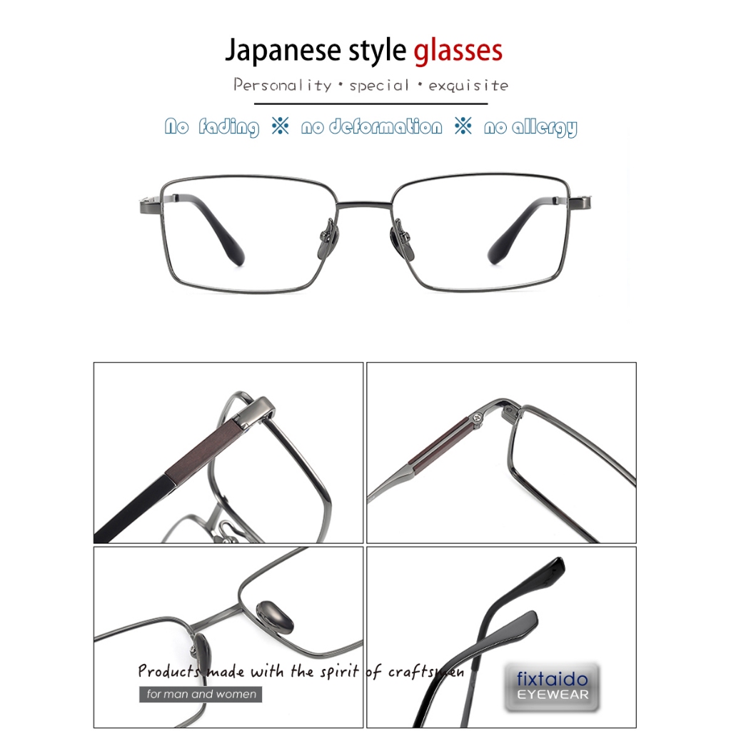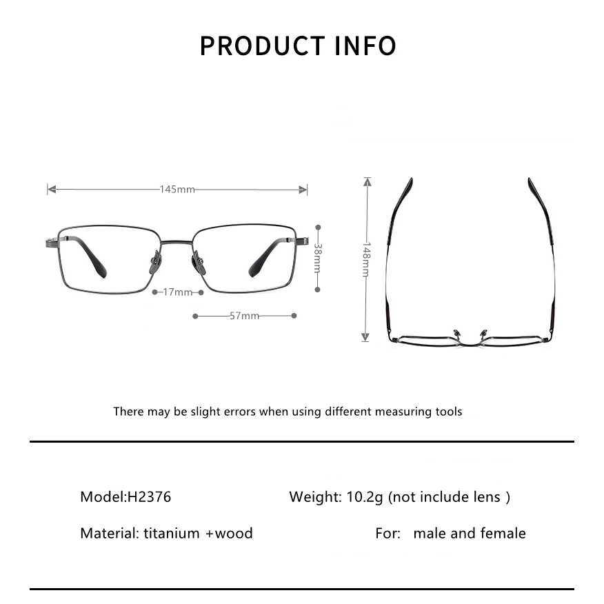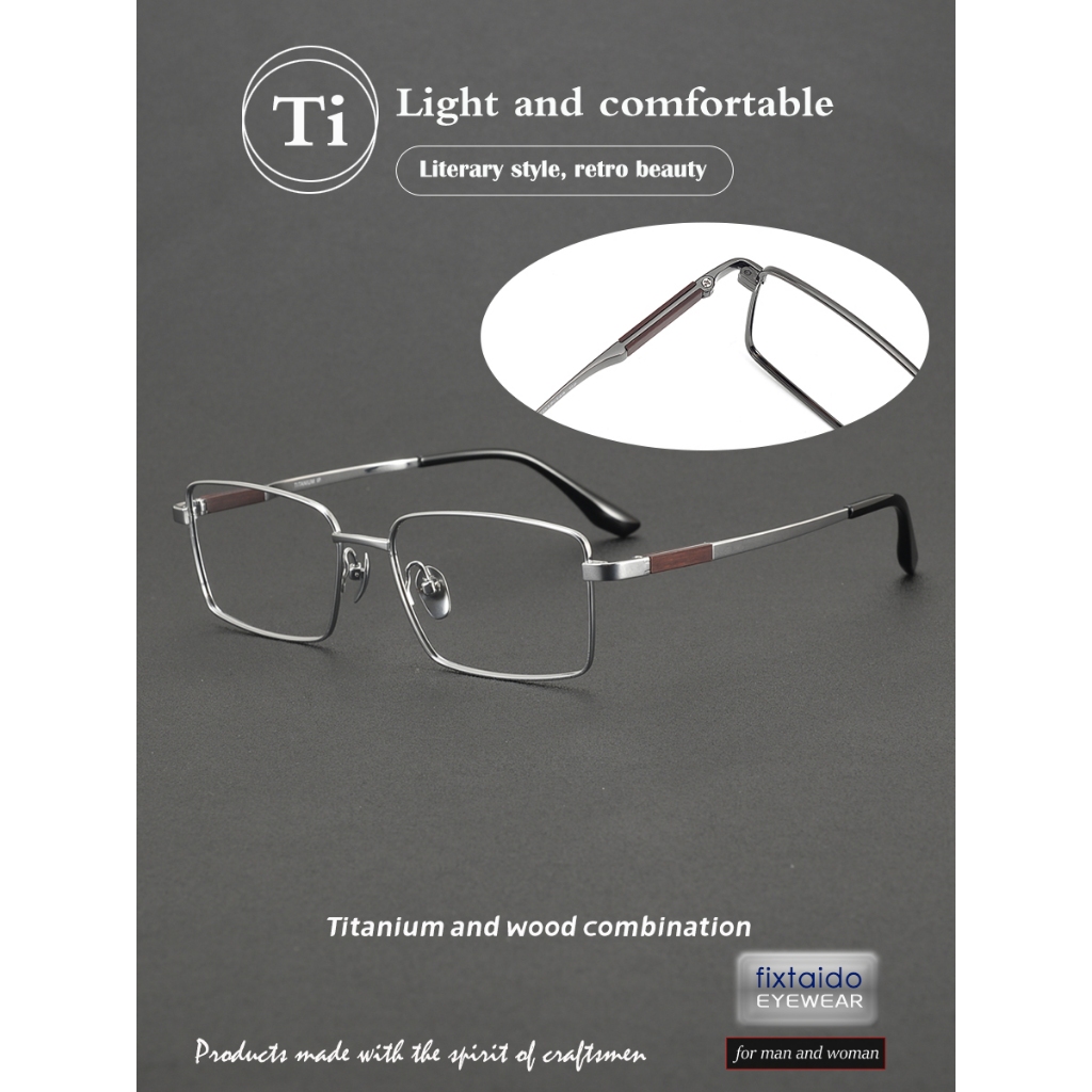 ไทเทเนียมและไม้จันทน์รวมกันแว่นตาฟูลเฟรมรูปสี่เหลี่ยมผืนผ้า 145 มม. สไตล์เรียบง่ายธุรกิจผู้ชายแว่นตาออปติคอล ชม.2376
