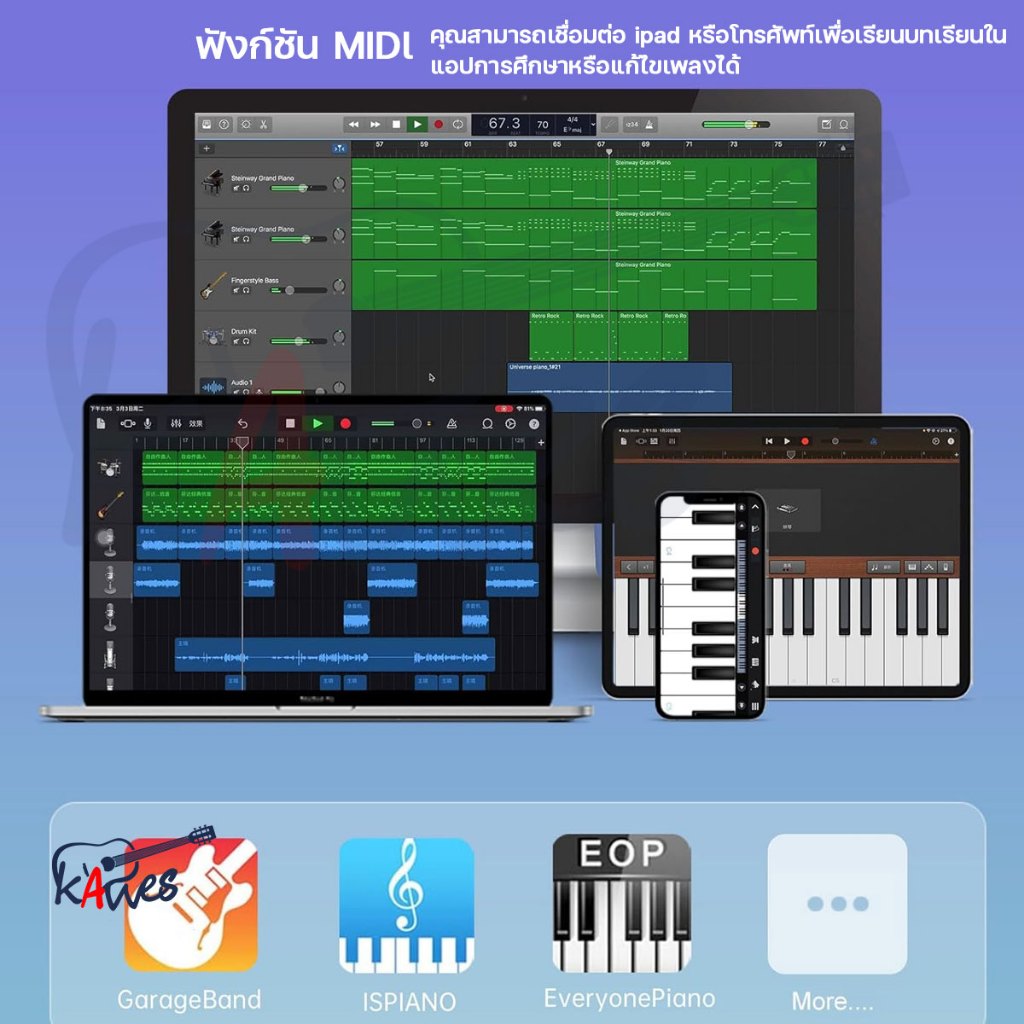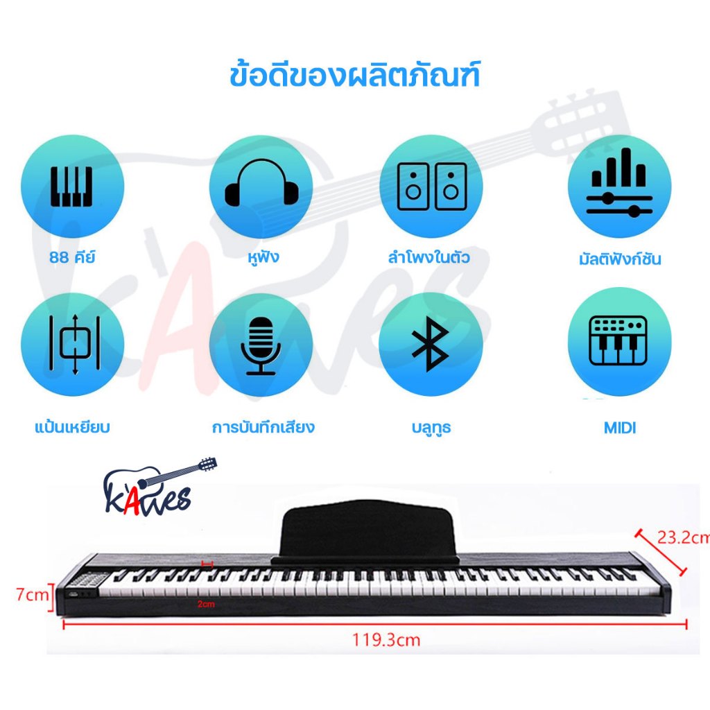 KAWESเปียโนไฟฟ้า 888-SG 88 คีย์ Full Size Portable Piano Keyboard รองรับ MIDI บลูทูธ