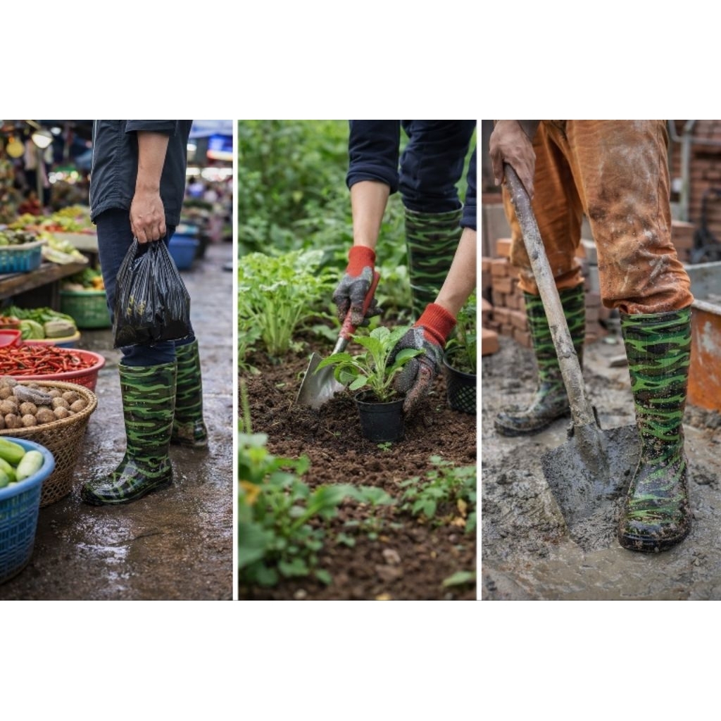 รองเท้าบูท ลายพราง เขียว 907