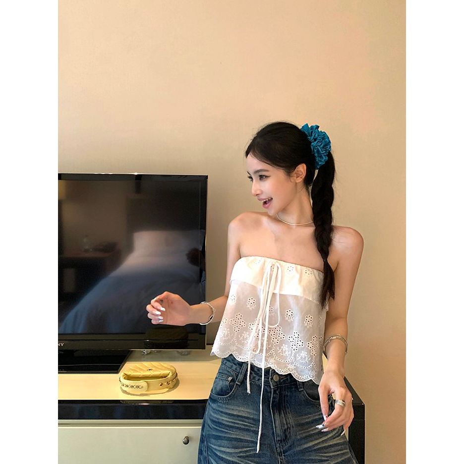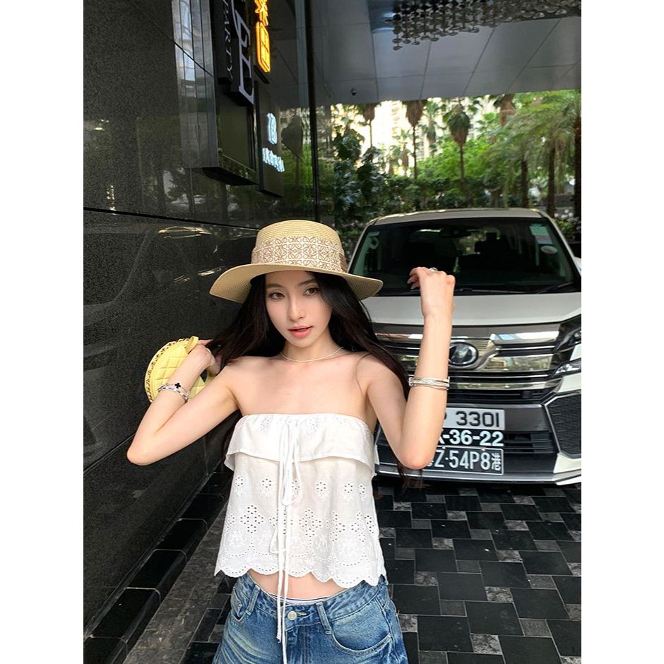 แจ็กเก็ตแบบสายเดี่ยวทรงถ้วยสำหรับผู้หญิง ฤดูร้อน เชือกรัด
