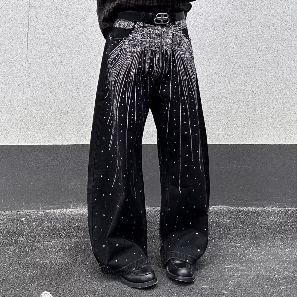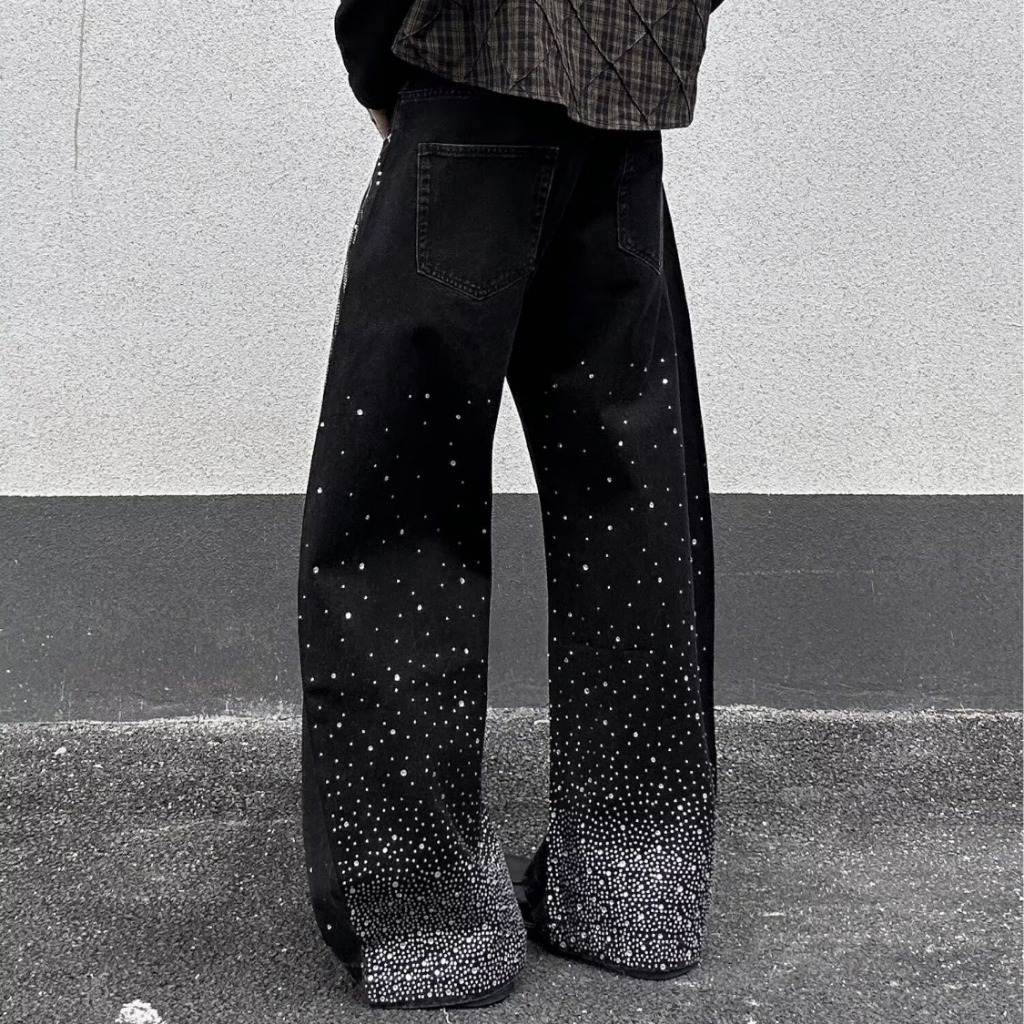 คุณทัง กางเกงยีนส์ผู้ชายฤดูใบไม้ร่วงใหม่อเมริกันย้อนยุคเพชรร้อนอเนกประสงค์กางเกงขาตรงคุณภาพสูง