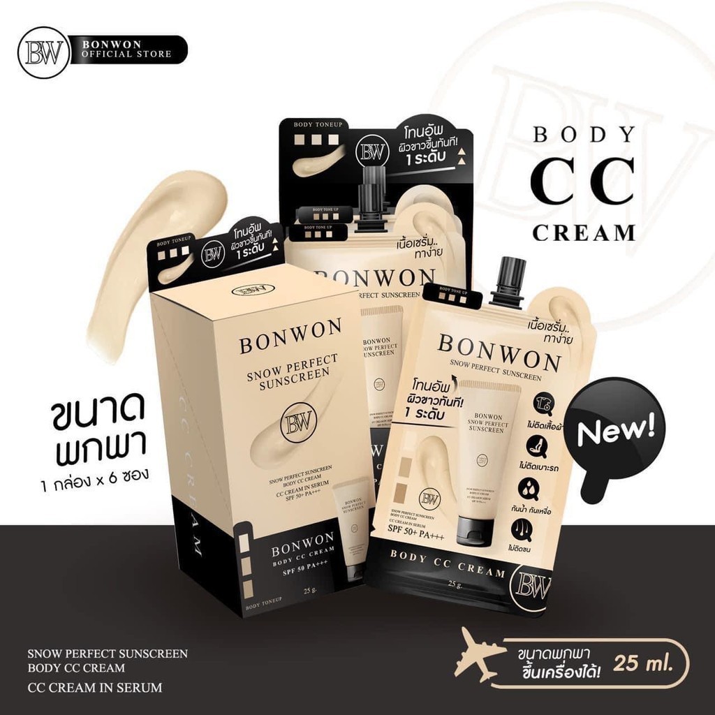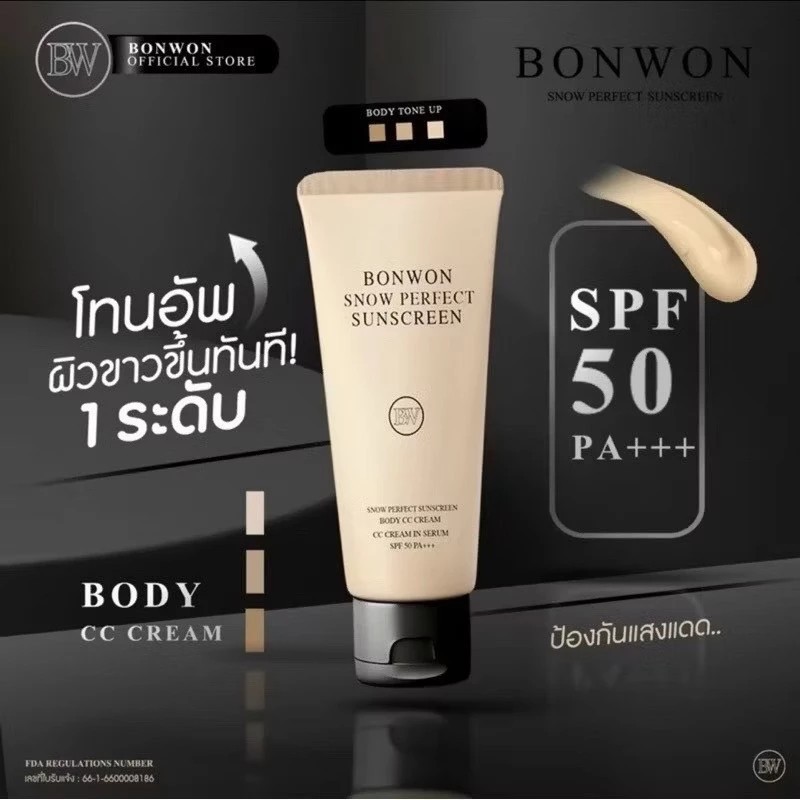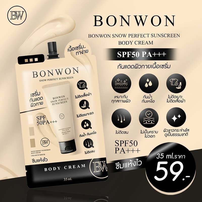 บอนวอน (แบบซอง 35ml.) สโนว์ เพอเฟค ซันสกรีน บอดี้ ครีม BONWON SNOW PERFECT SUNSCREEN BODY CREAM SPF50 PA+++