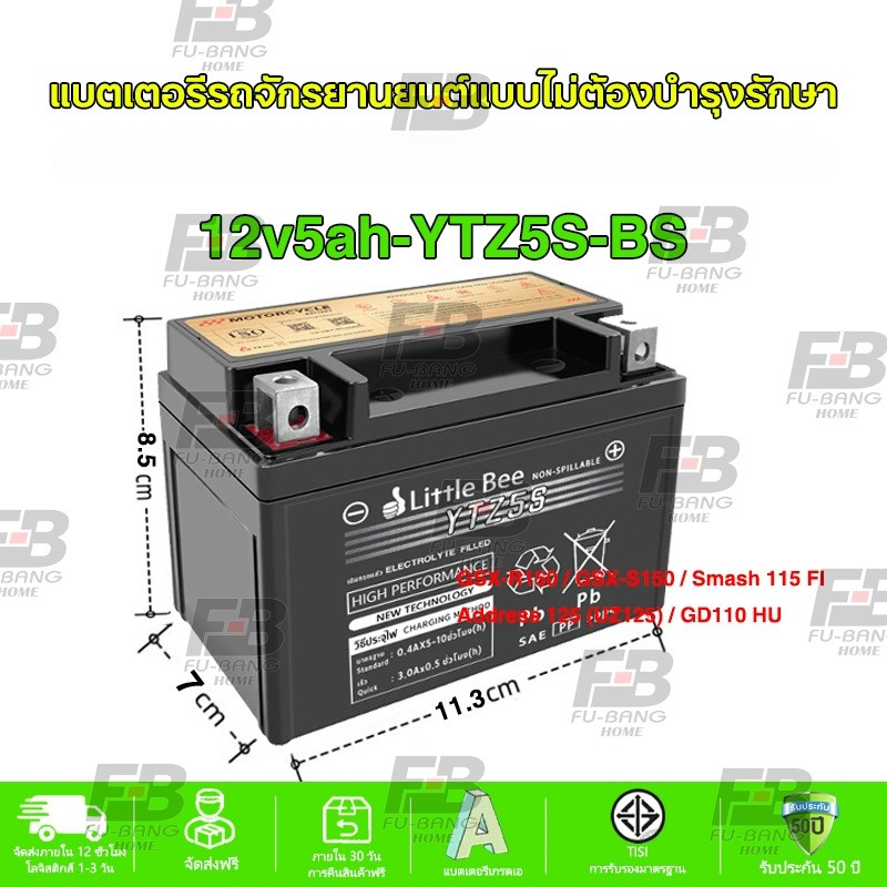 【รับประกัน 1 ปี】ปีแท้ แบตเตอรี่ 12V 5Ah แบตเตอรี่มอเตอร์ไซค์ YTZ5s 12V แบตเตอรี่แห้ง แบต เวฟ110i scoopy zoomer