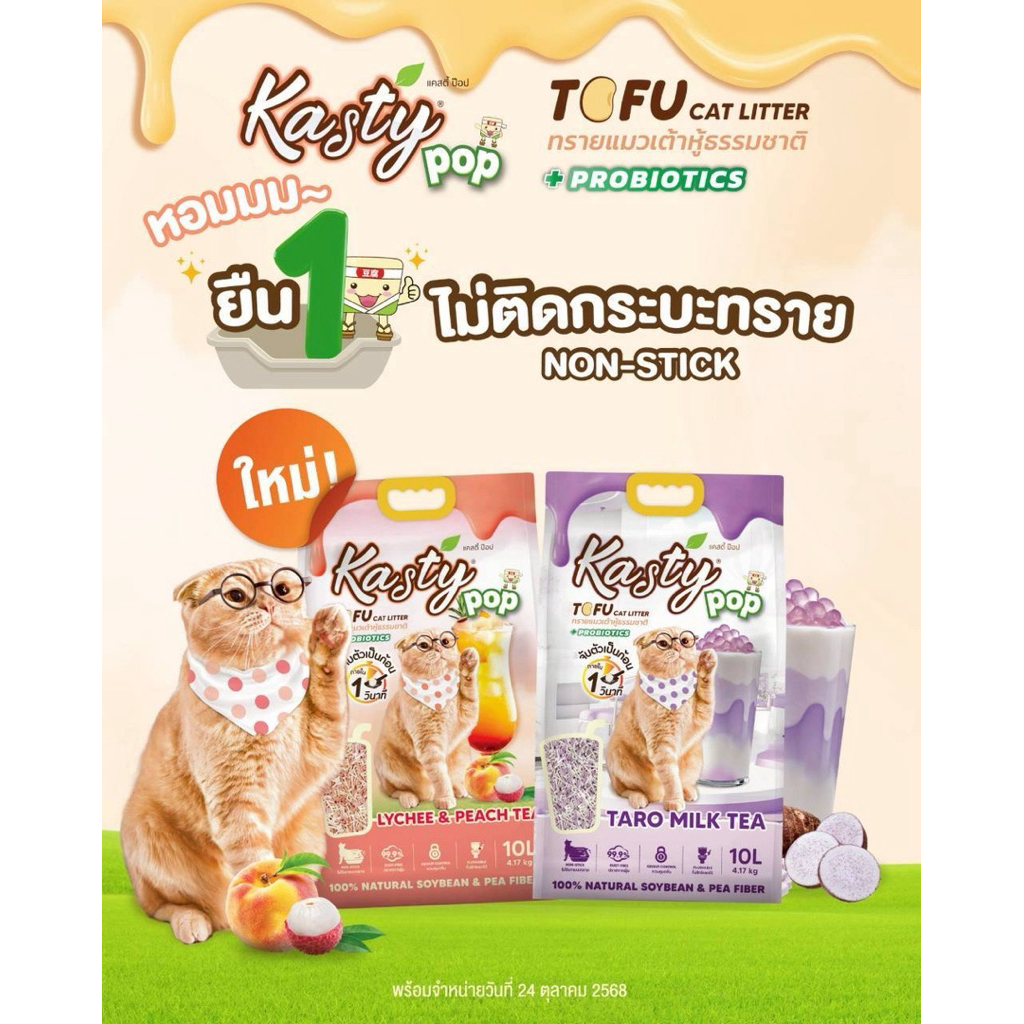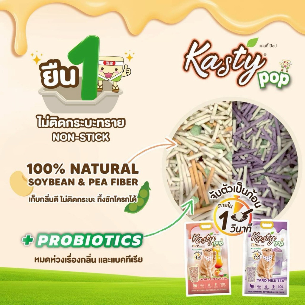 Kasty Pop แคสตี้ป๊อปทรายแมวเต้าหู้ 20 ลิตร ไร้ฝุ่น จับตัวเป็นก้อนใน 1 วินาที ไม่ติดกะบะทราย
