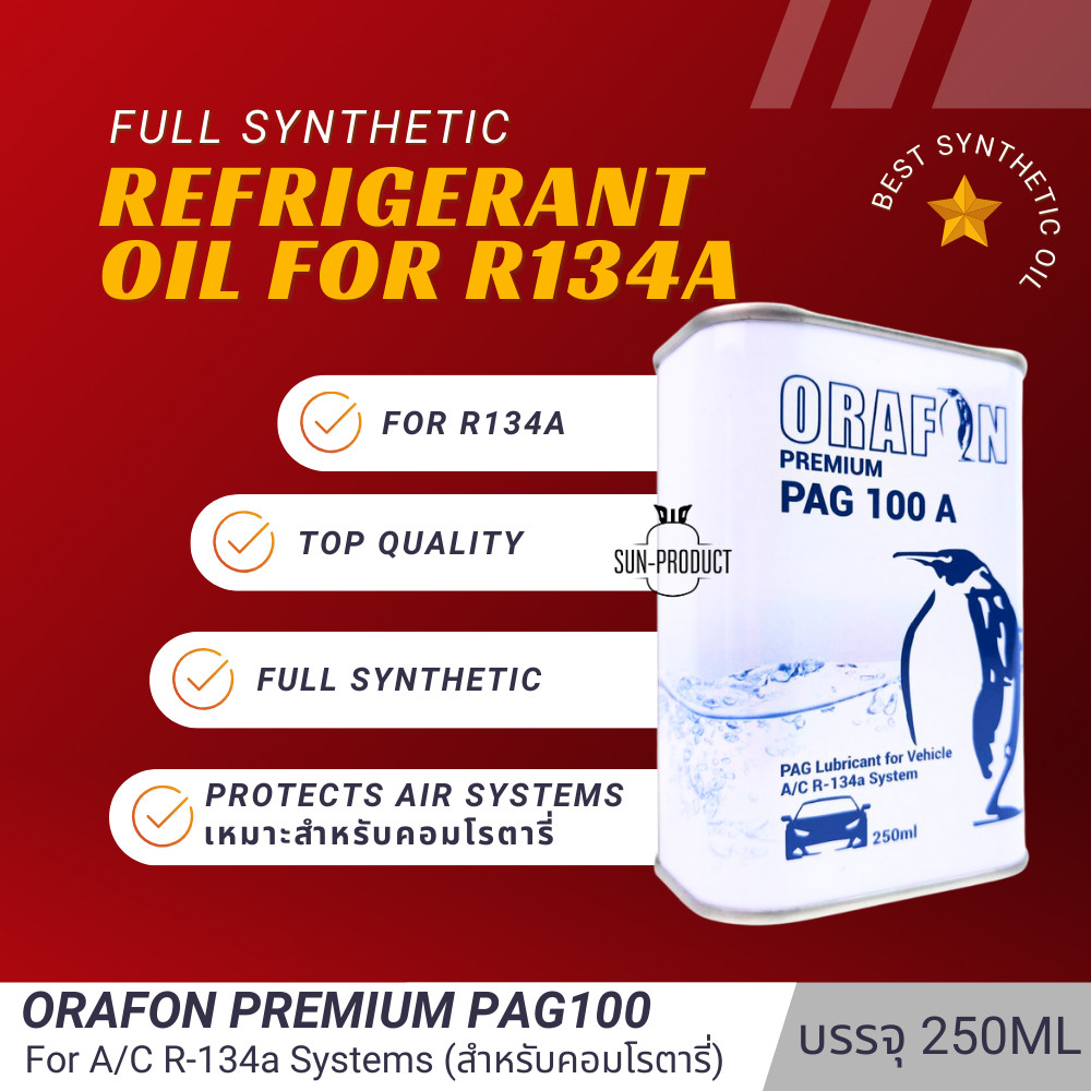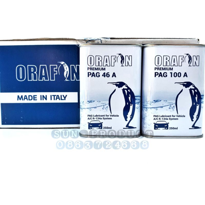น้ำมันคอมฯแอร์ ORAFON 1ขวดบรรจุ 250ML น้ำมันแท้ 100% ใช้กับสารทำความเย็น R-134a
