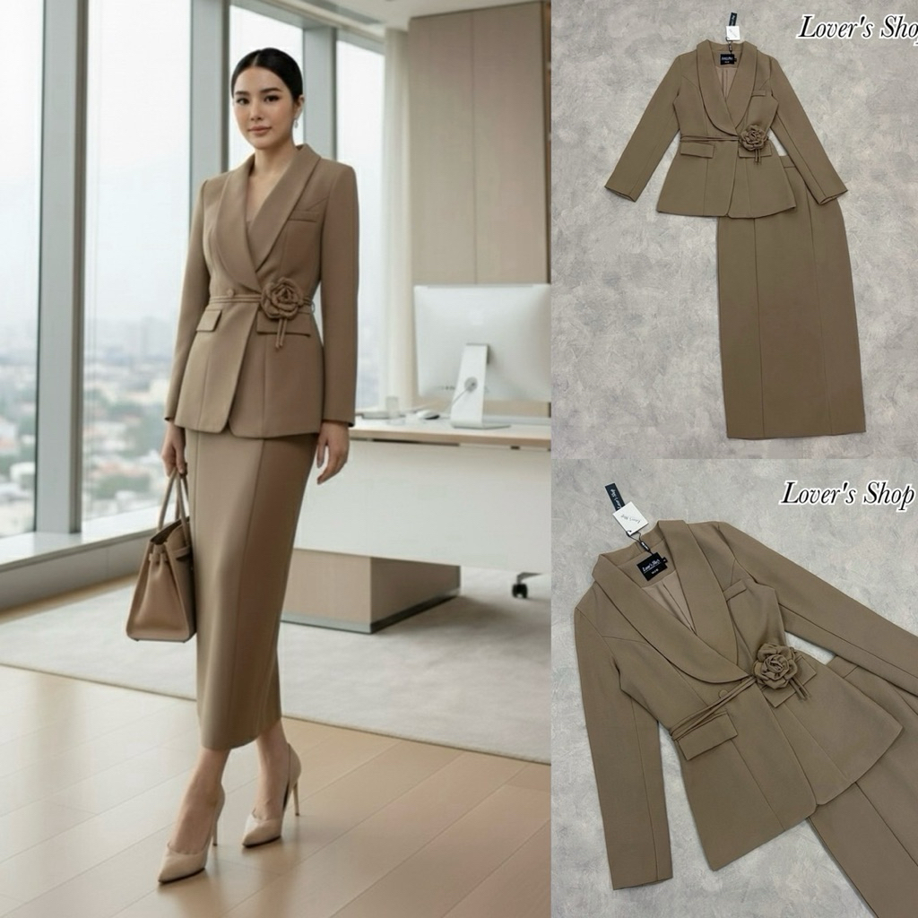 ชุดสูทกระโปรง Set 3ชิ้น เสื้อสูท+กระโปรง Loveshop