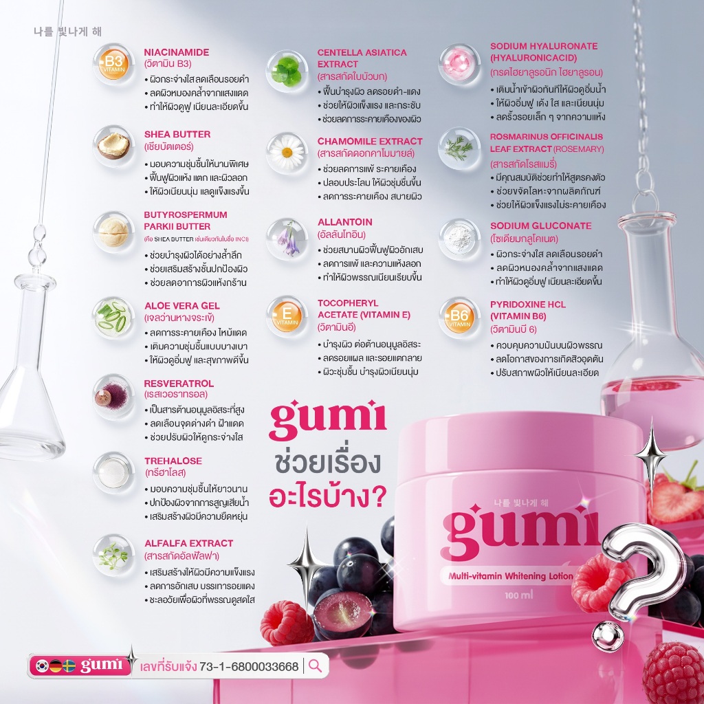กูมิครีมกังนัม1กระปุก GUMI Multi-Vitamin Whitening Lotion โลชั่นบำรุงผิว สูตรวิตามินเข้มข้นจากเกาหลี