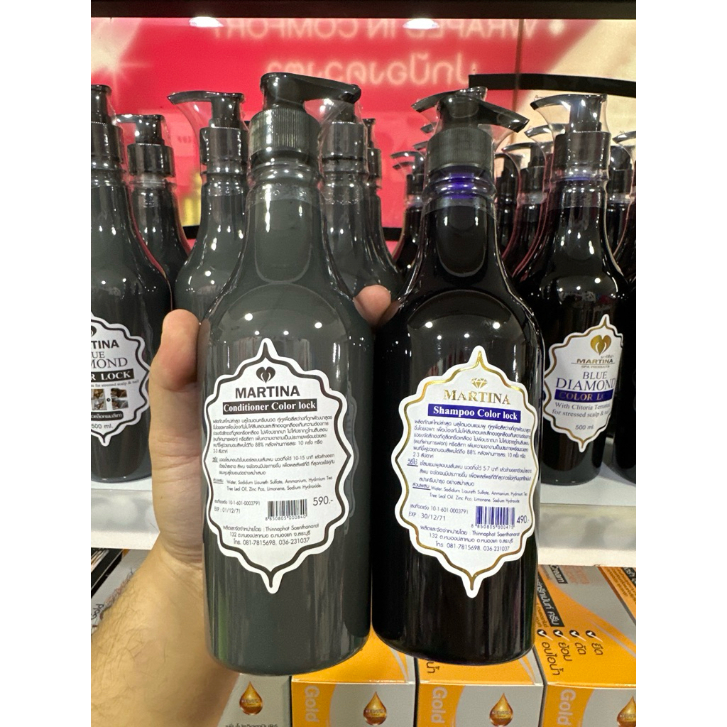 ชุดทำผมสีเทา กรบสีแดง แชมพูม่วง + ครีมนวดเทา ขวดละ500ml. martina