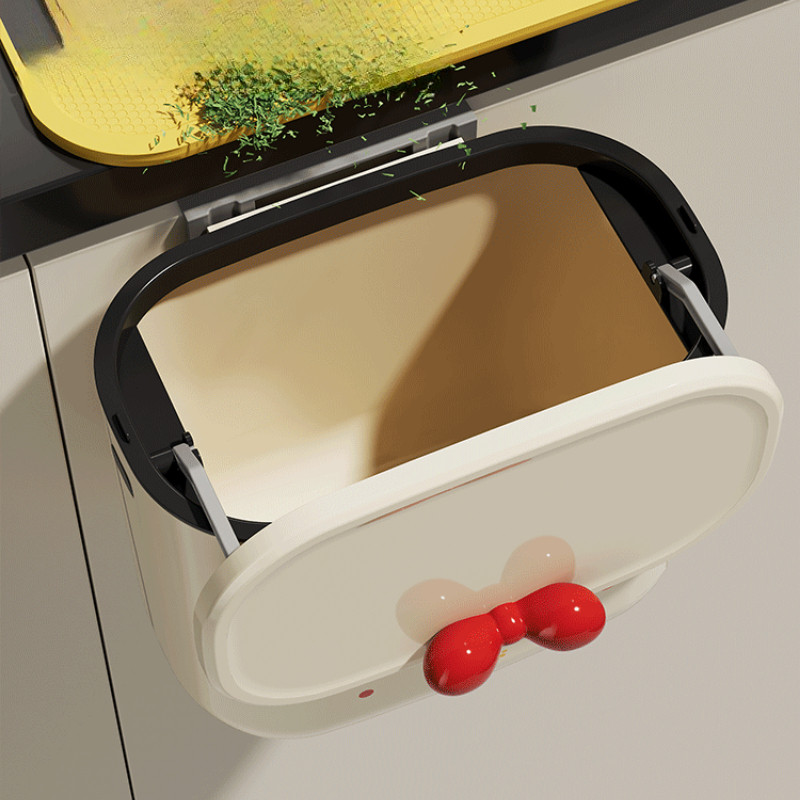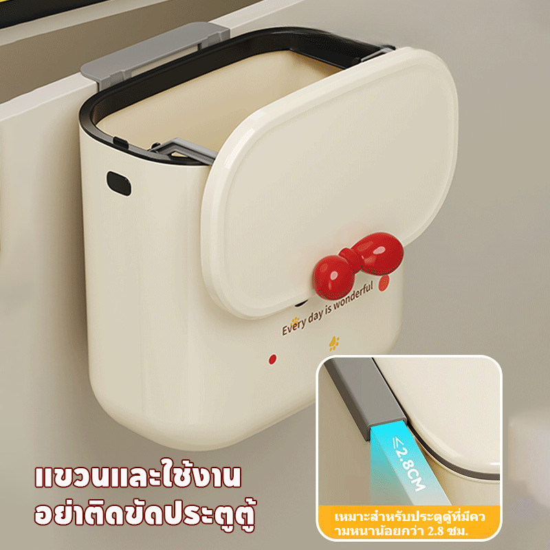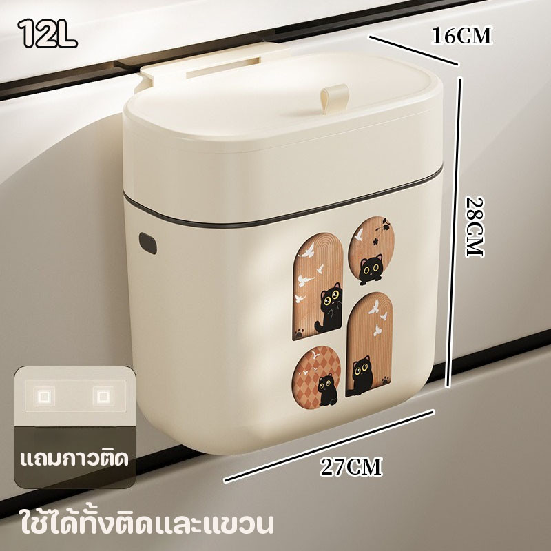 BHQ ถังขยะติดผนัง ในครัวพร้อมฝาปิด ถังขยะในครัว แขวน มีฝาปิด ในห้องน้ําสีครีมคุณภาพสูง