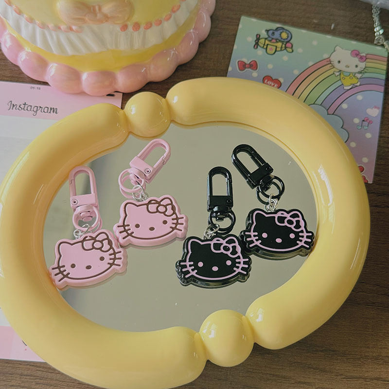 น่ารัก สีดําสีชมพูแมวพวงกุญแจการ์ตูนตุ๊กตาน่ารักคิตตี้กุญแจรถแหวนผู้หญิงกระเป๋าจี้ของขวัญสาว