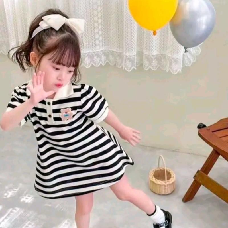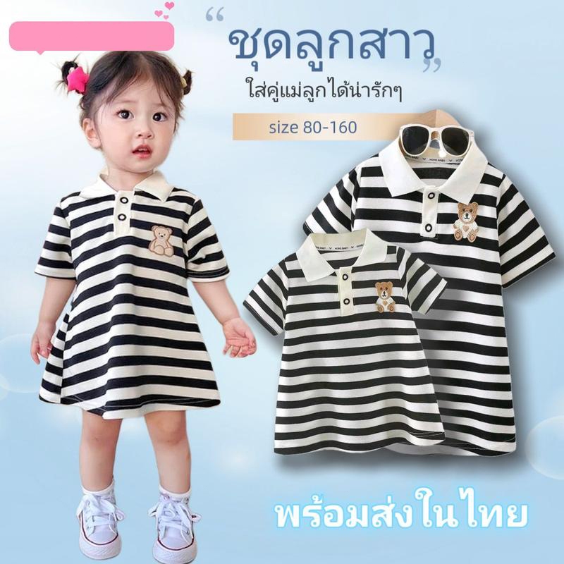 ชุดเดรสโปโล แฟชั่น สำหรับเด็กผู้หญิง แขนสั้นลายทาง คอปก ผ้าระบายอากาศ ใส่สบายไม่ร้อน "DA-K"