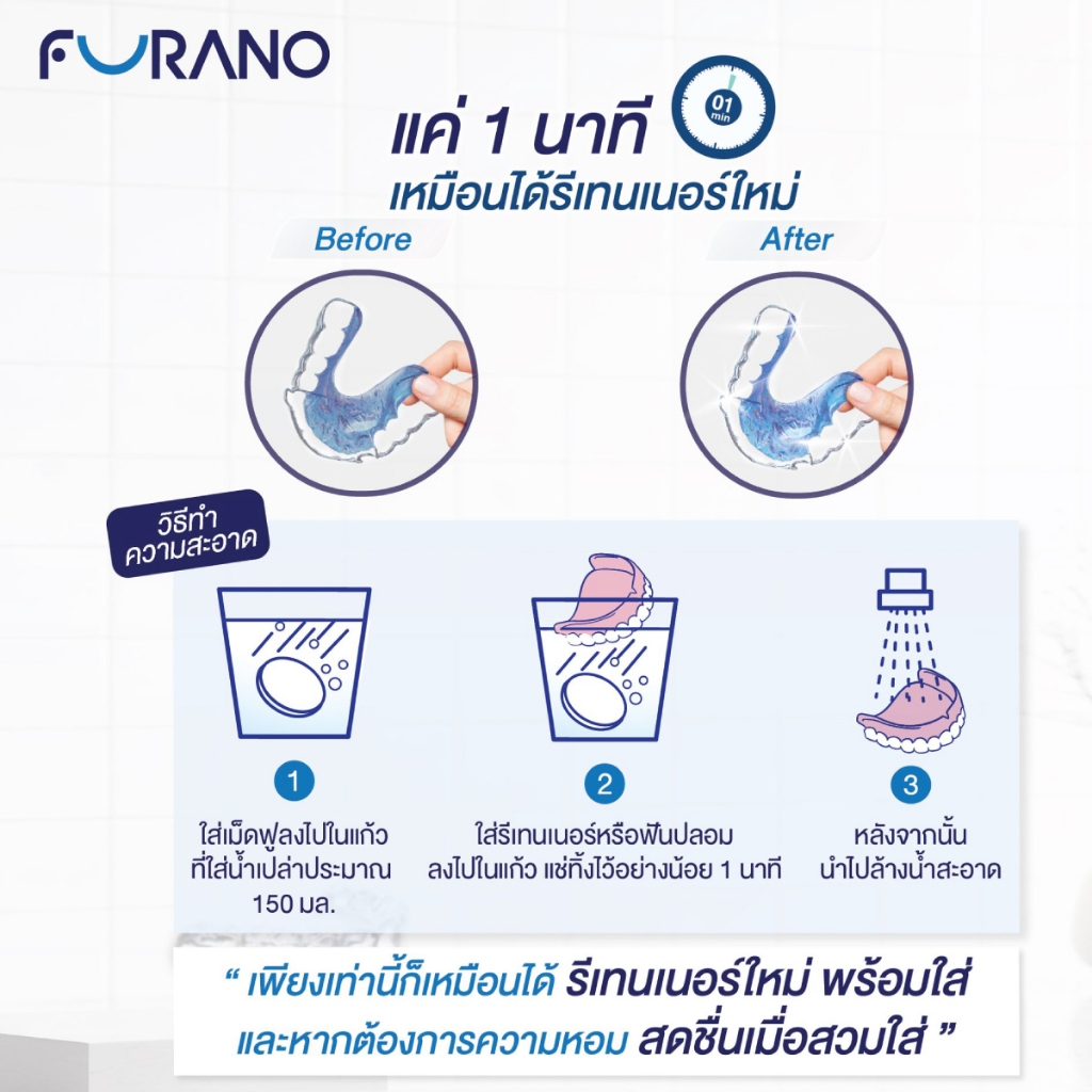 Furano เม็ดฟู่ทำความสะอาดฟันปลอม และรีเทนเนอร์ ทำความสะอาดอย่างอ่อนโยนใน 5 นาที