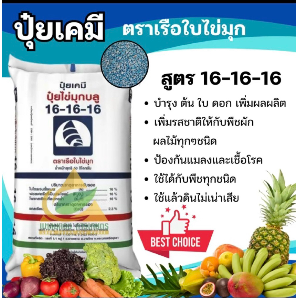ปุ๋ย16-16-16 1กิโล❌สีเขียว❌ตราเรือใบ เม็ดสีฟ้า ปุ๋ยสูตรเสมอ ปุ๋ยเร่งต้น เร่งดอก เร่งผล เร่งการเจริญเติบโตแบบตักแบ่ง