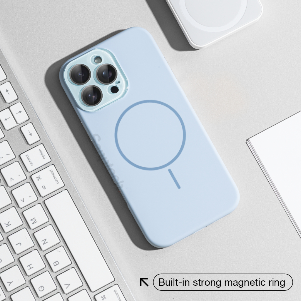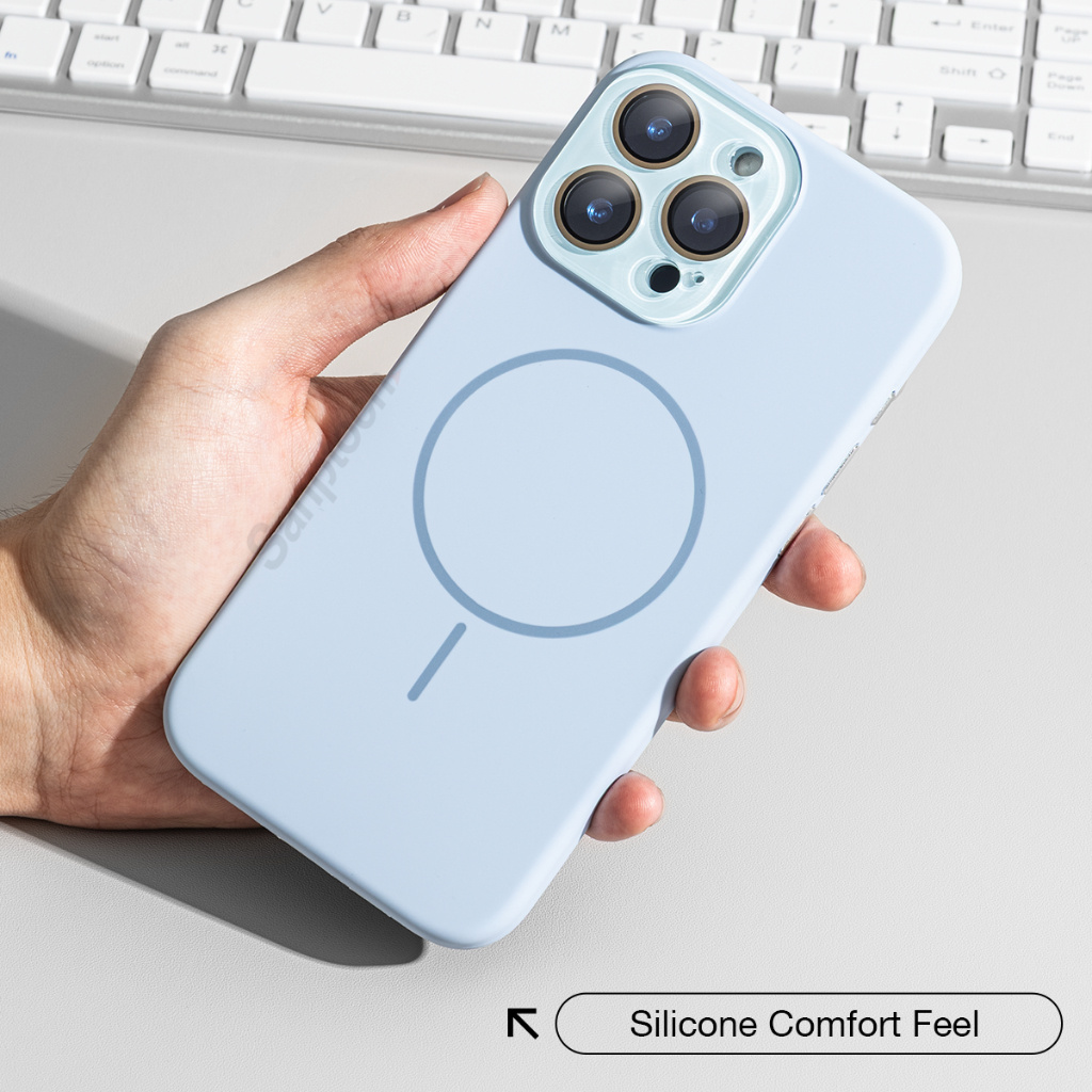 Sanptoch สําหรับเคสโทรศัพท์ซิลิโคนที่เหมาะกับผิวแม่เหล็กสําหรับ iPhone 16 / 15 / 14 / 13 Pro Max Soft Edge + Hard PC ปกหลังทหาร-Drop ปลอกป้องกันพร้อมฝาครอบเลนส์อะคริลิค