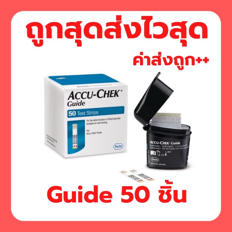 Accuchek Guide แผ่นตรวจน้ำตาลในเลือด กล่องละ 50 แผ่น สินค้ามีกล่องทุกชิ้น เดือน 6 ปี 2027 ฉลากไทย