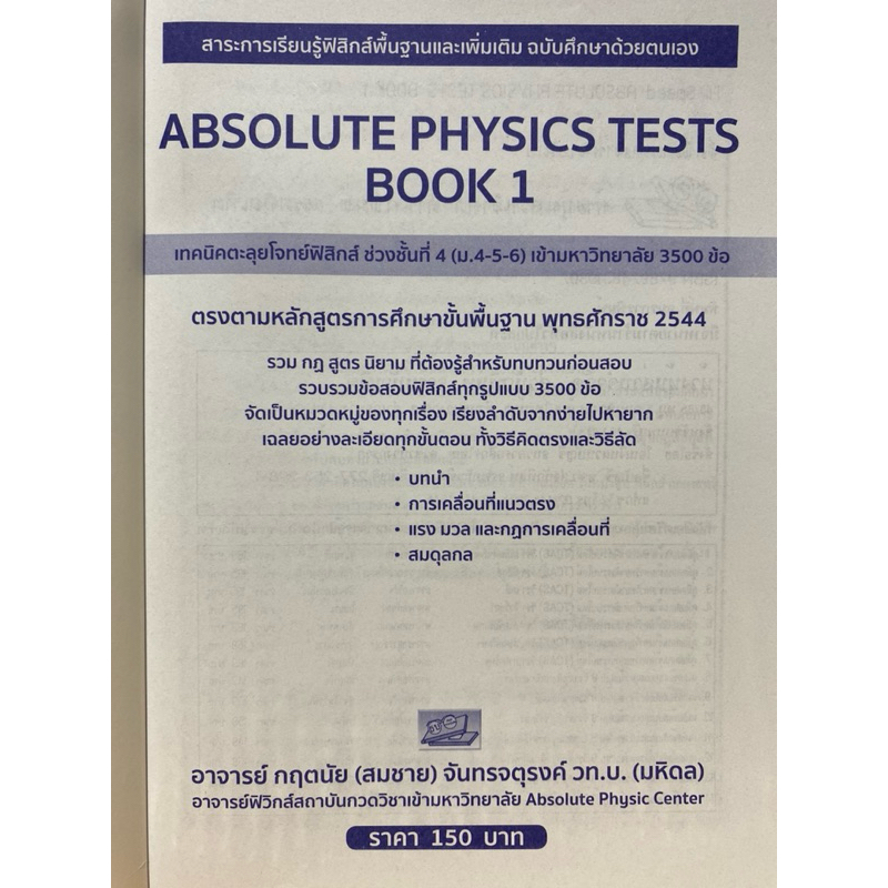 9789749319307 c111 ABSOLUTE PHYSICS TTESTS BOOK I: เทคนิคตะลุยโจทย์ฟิสิกส์ช่วงชั้นที่ 4
