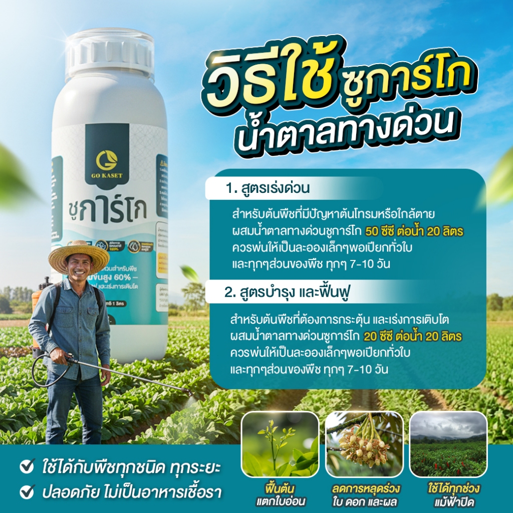 [3ขวด] ชูการ์โก(ขวดใหญ่) 1000 ML - SUGAR GO น้ำตาลทางด่วนสำหรับพืช ปุ๋ยน้ำ ปุ่ญกุหลาบ ช่วยเร่งราก