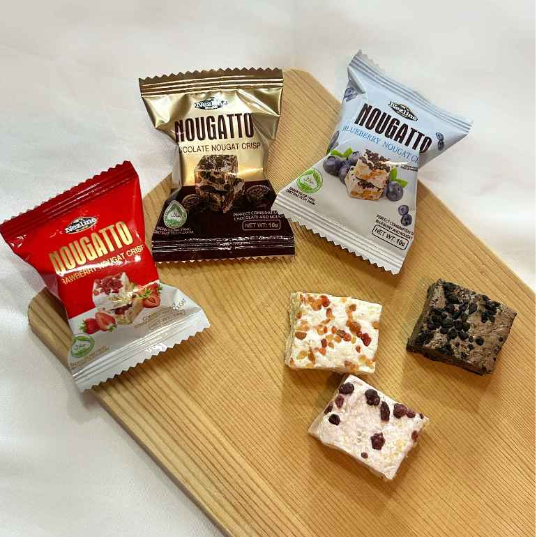 [ยกลัง 20 ห่อ+ฟรี 2 ห่อ](300 กรัม) Nezline Nougatto Crisp นูกัตโตะ ขนมนูกัต 3 รสชาติ สตรอว์เบอร์รี ช็อกโกแลต บลูเบอร์รี่