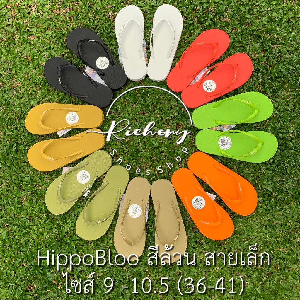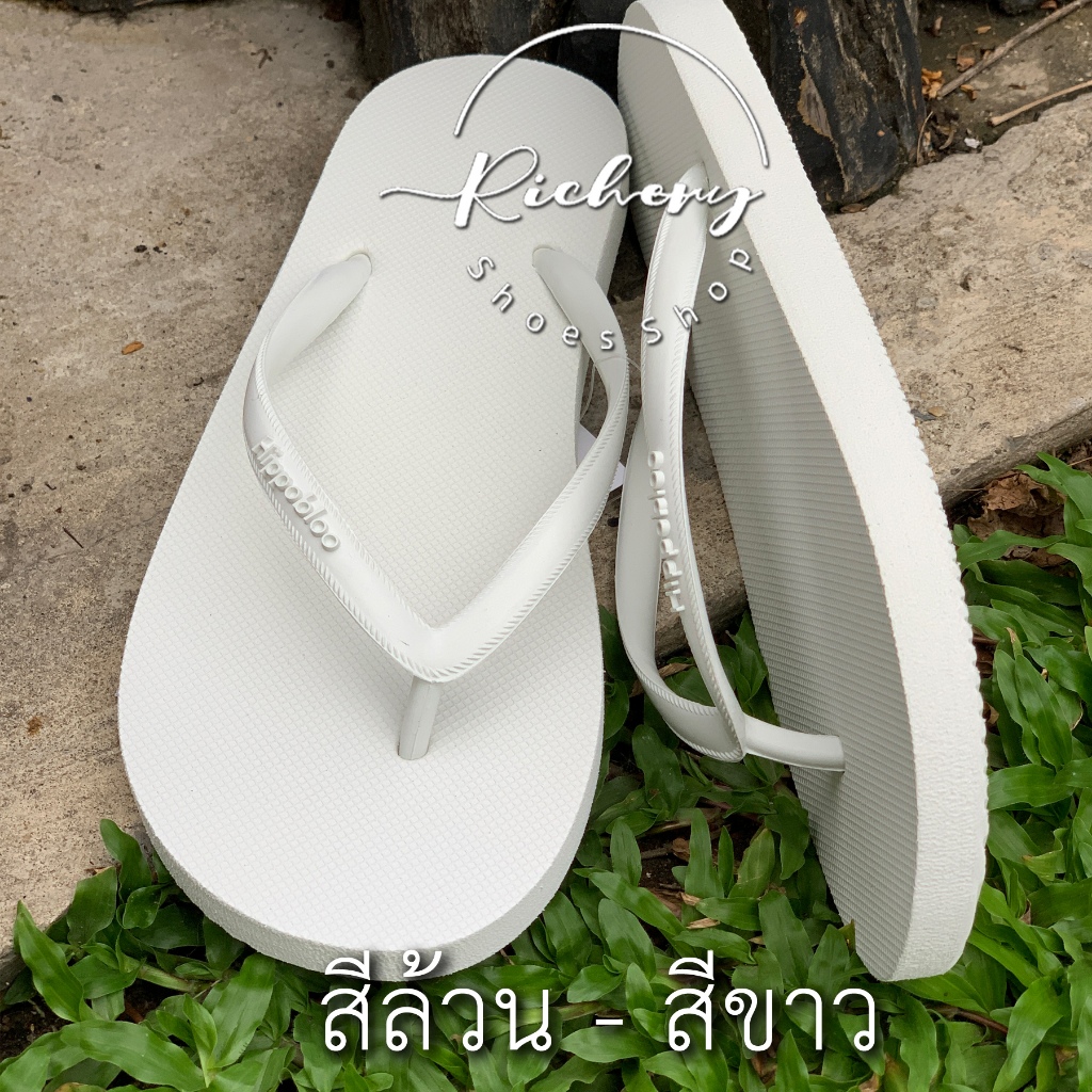 รองเท้าแตะสายเล็ก Hippo Bloo สีขาว สีล้วน ให้เลือกหลายสี ใส่สบาย นิ่มมาก