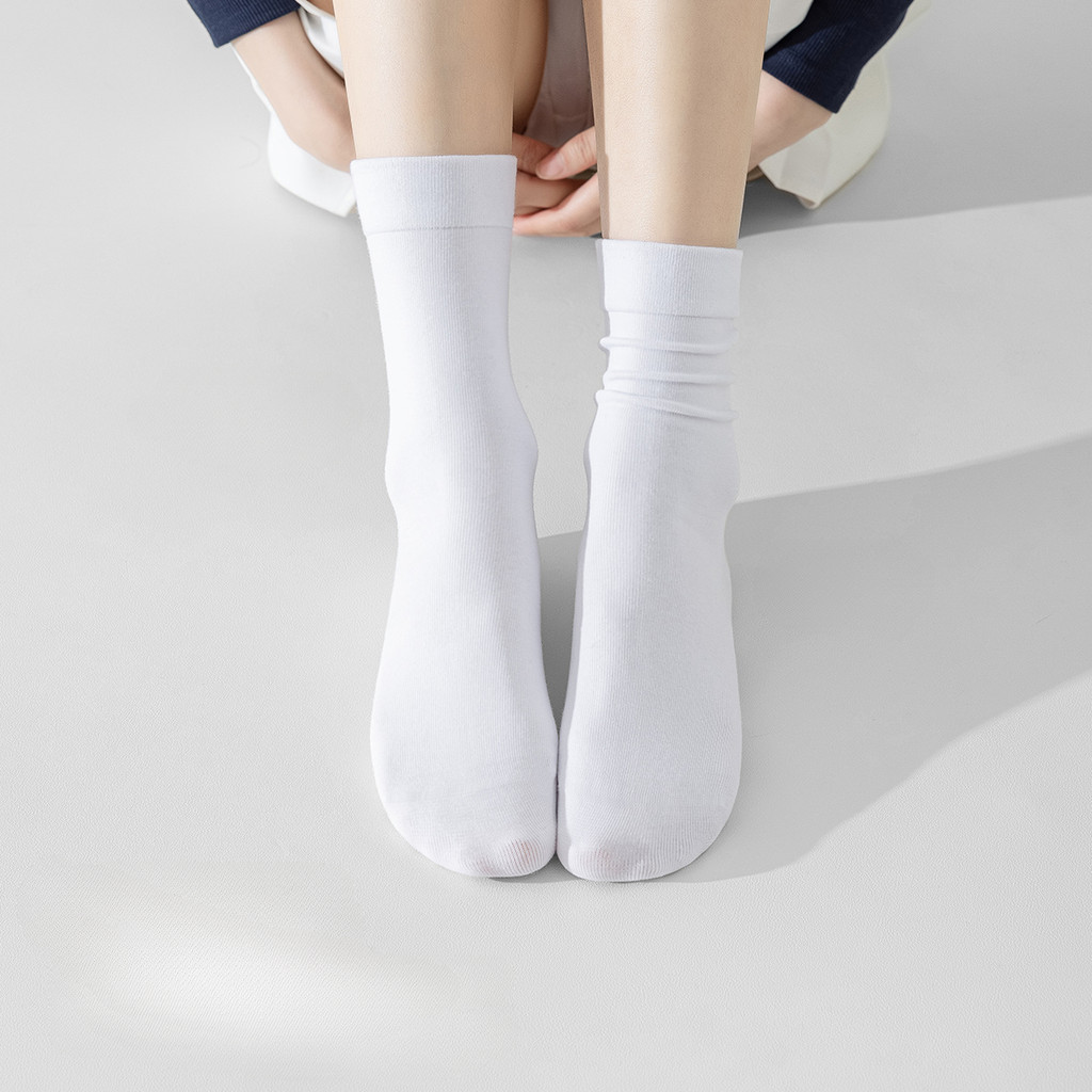 คิวเอฟวาน ผู้หญิงแข็งสบาย ๆ ถุงเท้าผ้าฝ้ายสีขาวเกาหลีสูงด้านบน อิน สไตล์ดูดซับเหงื่อระบายอากาศแฟชั่นถุงเท้านุ่มปากกว้าง