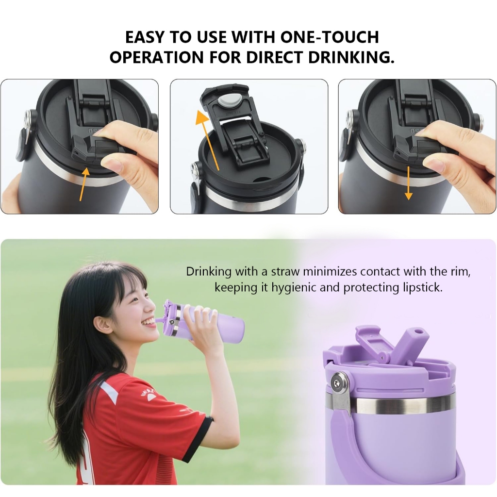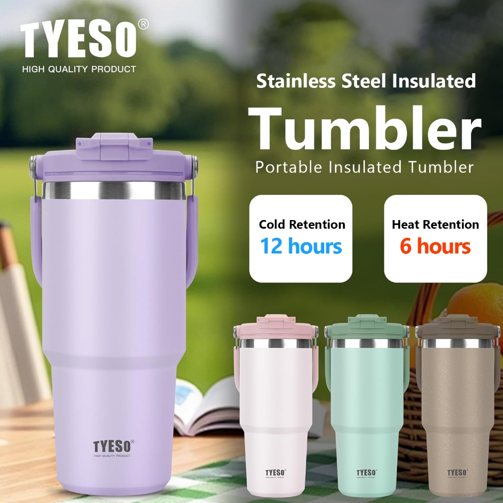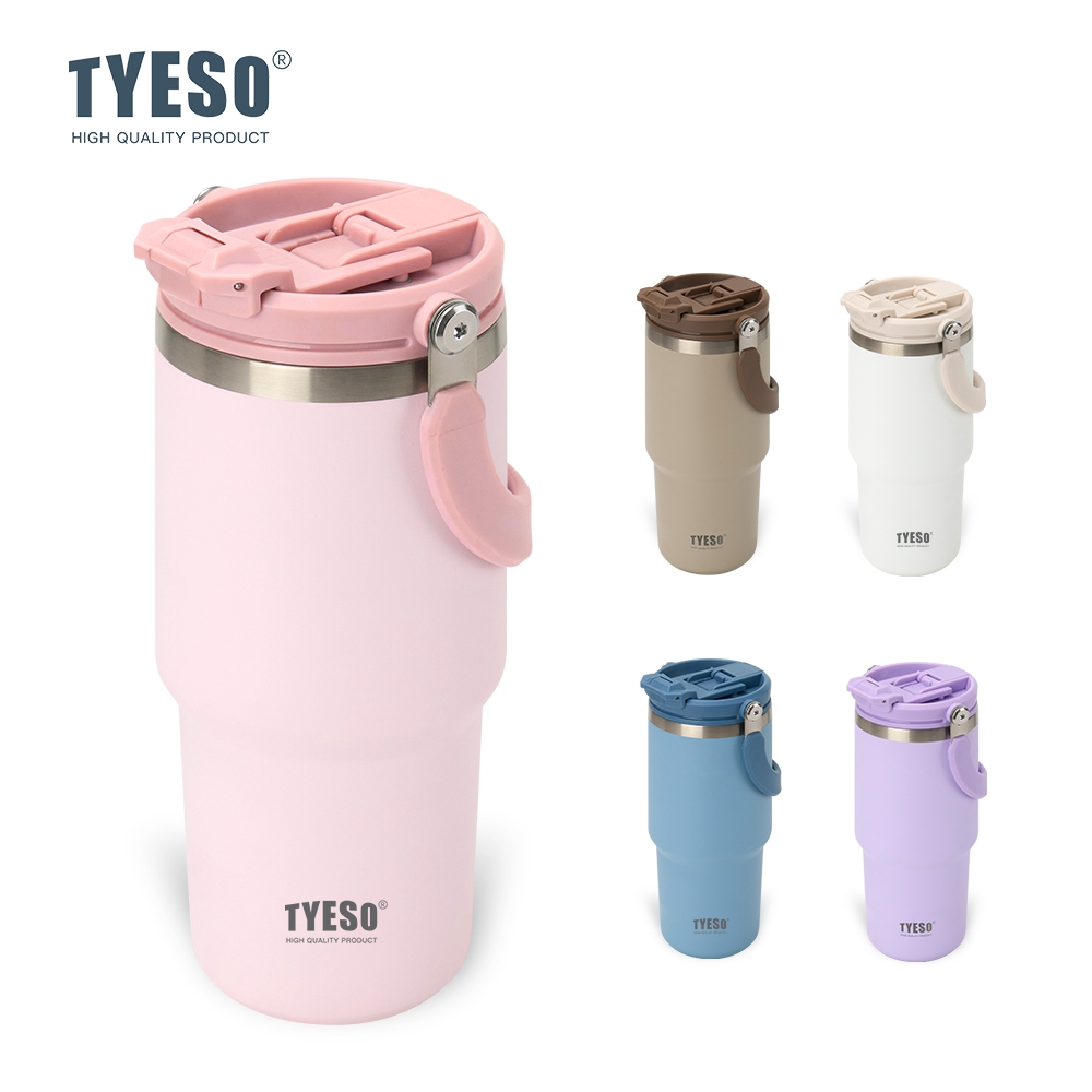 TYESO 01-01022/23/24/25/26 600ML/750MTumbler พร้อมที่จับ,ขวดน้ําฉนวนสุญญากาศพร้อมฝาปิด 2-in-1 และฟาง,ถ้วยกาแฟสแตนเลสผนังคู่แก้วเดินทางป้องกันการรั่วพลิก